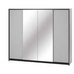 För att säkerställa ordning och estetik måste sovrummet även ha en rymlig garderob. Sovrumsgarderoben från Gris-kollektionen är uppdelad i fyra zoner, som innehåller ett lämpligt antal hyllor och barer för galgar, tack vare vilka vi enkelt kan ta emot alla nödvändiga saker. Varje segment har sin egen gångjärnsdörr, vilket gör det ännu enklare att organisera din garderob.