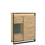 Vardagsrumsmöbler Quant överraskar med sin unika design, baserad på industriell stil. De iögonfallande svarta baser i metall ger kompositionen en sträng karaktär som tilltalar alla beudrare av modern elegans. Stommarna och fronterna av enskilda element är också anmärkningsvärda. De slitstarka laminerade möbelskivor har färg av artisan ek som imiterar den naturliga färgen av ek. Man kan inte glömma den externa och interna LED belysningen. Möbler från serien Quant ser till stor del så bra ut tack vare LED-remsorna under möbeltopparna. Subtilt ljus betonar perfekt fronternas tredimensionella natur och skapar en unik atmosfär i varje vardagsrum. Dessutom finns det intern belysning som alternativ till vitrinskåp i den glasbetäckta delen. Det orsakar att man på ett imponerande sätt kan visa föremål som finns i dem och därigenom betona trämönstret på baksidan av möblerna.