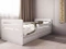 - Sängen har 100 cm glidskena, tvådelad låda för sängkläder placerad på gummihjul med extra säkrade kanter och madrass. Barriären, liksom lådan, kan monteras på båda sidor av möbeln. Användningen av tjocka brädor och en träram ger en lastkapacitet på upp till 100 kg.