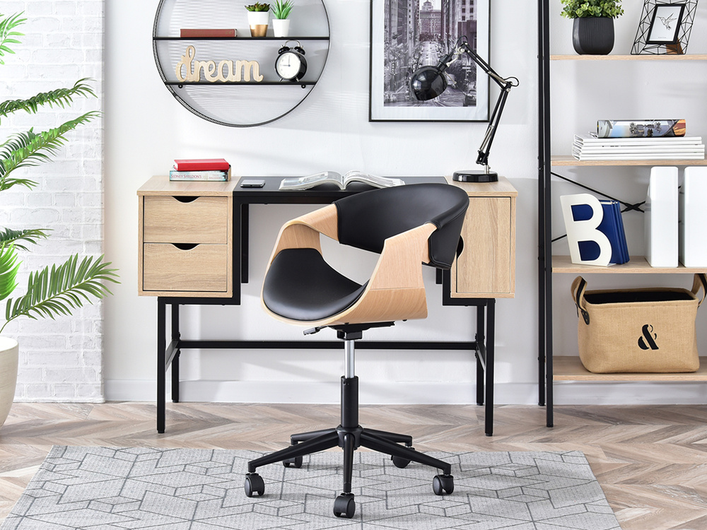 Kontorsfåtölj naturell ek/svart, svarta ben RAPID