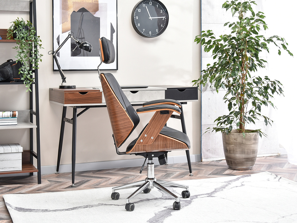 Kontorsfåtölj valnöt/svart krom ben FRANK