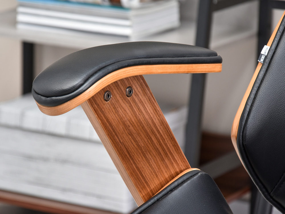 FRANK-fåtöljen kännetecknas av kromad bas, som ger elegans och ett modernt utseende, vilket passar perfekt in i den moderna i industriell inredningsstil. Sits tillverkad av en kombination av av trä i ekologiskt läder i valnöt i svart garanterar inte bara estetik, utan också hållbarhet och enkel rengöring.