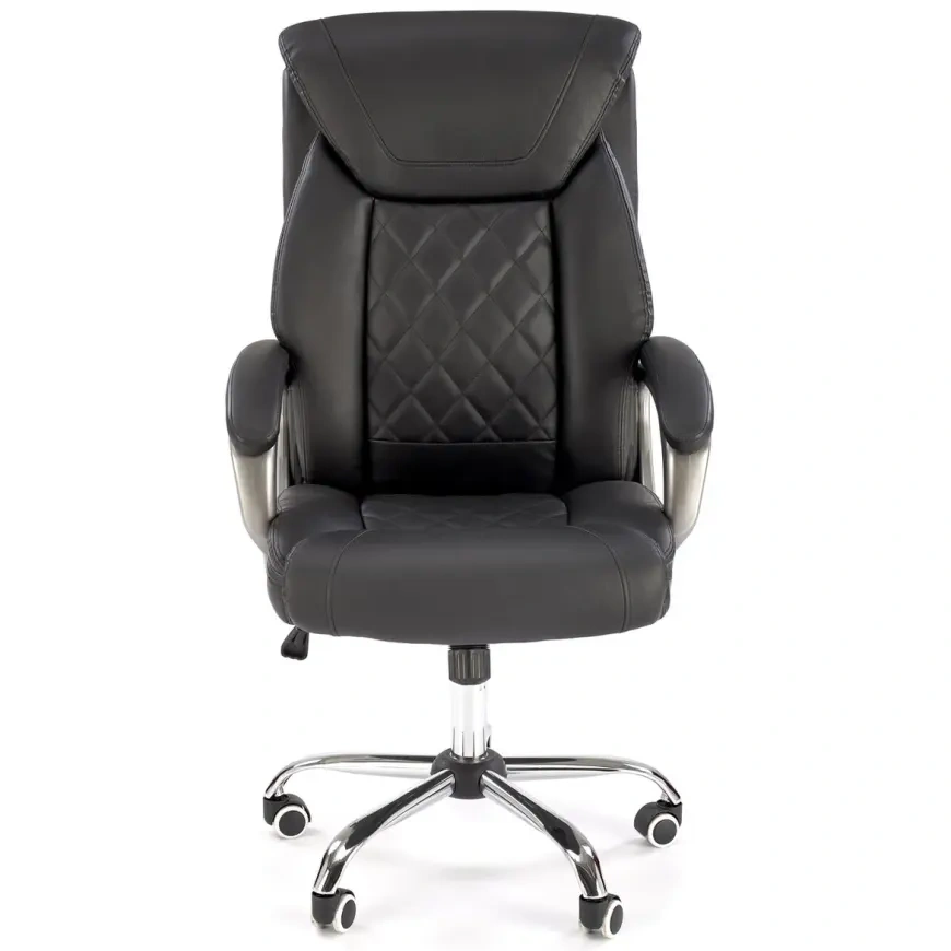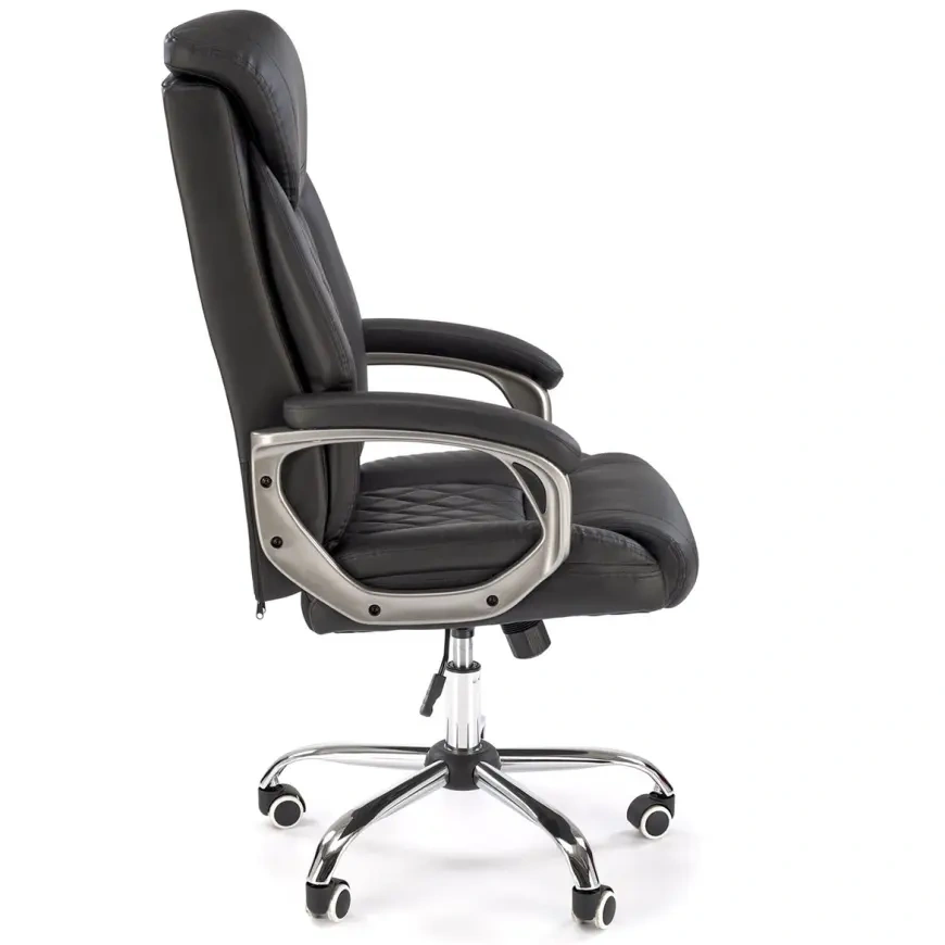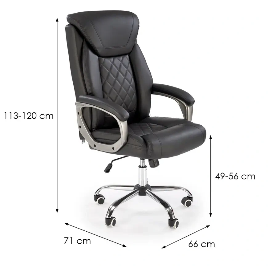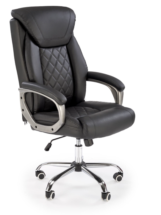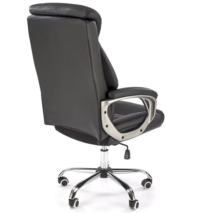 Armstöden har mjuka vadderade kuddar ovanpå. Med denna lösning är det möjligt att placera armarna i en vinkel på 90 grader mot överkroppen. Fåtöljen i ryggstödets övre del har ett tydligt separerat fast nackstöd. Den är designad för att stödja musklerna i nacken. Materialet som används för tillverkningen av fåtöljen är ekoläder. Detta tyg är en imitation av naturligt läder, med mycket hög mekanisk styrka. Den är vattentät, flexibel och lätt att rengöra.
