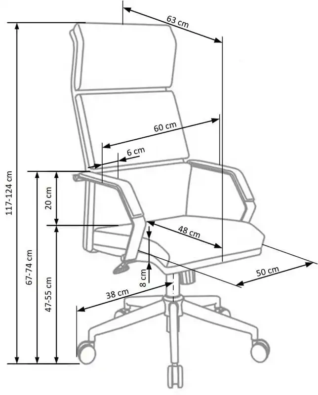 Ryggstödet är profilerat, vilket positivt påverkar stolens ergonomi. Den övre delen av ryggstödet fungerar som ett nackstöd. Detta föremål är designat för att stödja användarens nacke- och axelmuskler. Sitsen klädd med ekoläder och ett tjockt lager vadderat skum användes i fåtöljen. Fasta armstöd är estetiskt gjorda i en kromram. I den övre delen har de mjuka överdrag täckta med eko-läder. Detta tyg är en imitation av naturligt läder, med mycket hög mekanisk styrka. För det första är det vattentätt, flexibelt och lätt att rengöra.