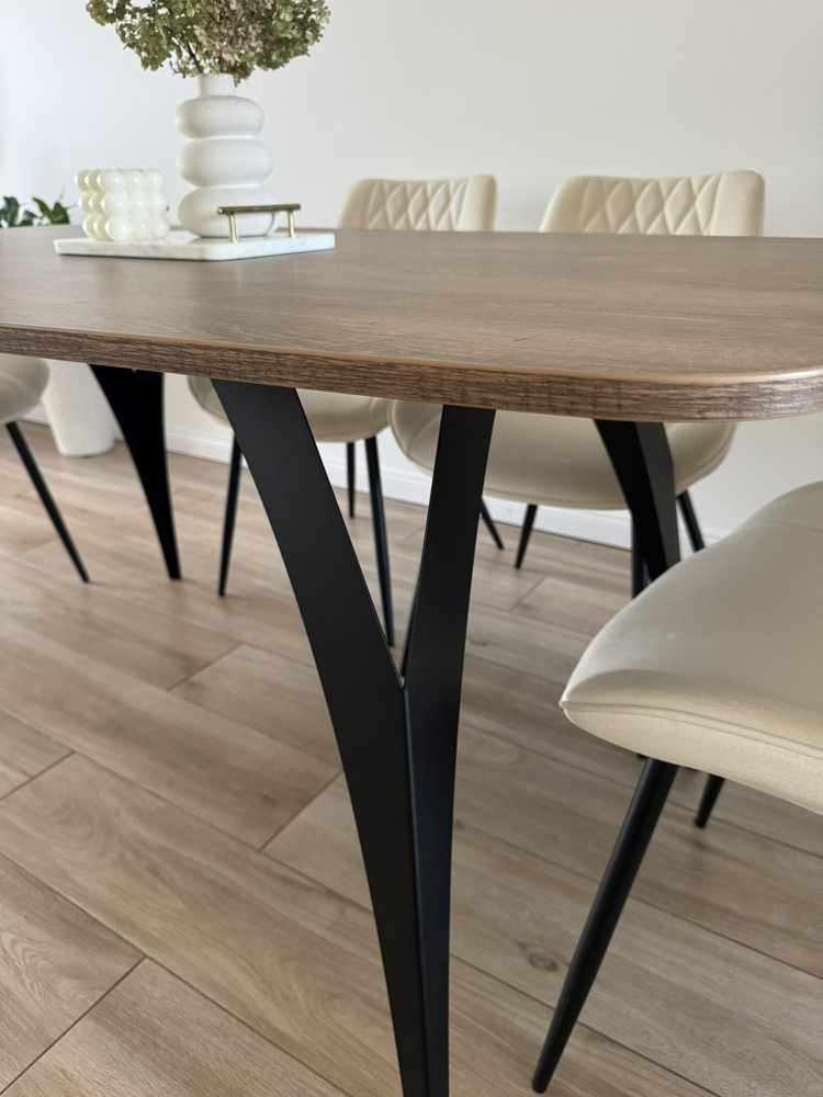 En av ELISMA-bordets viktigaste tillgångar är dess Y-formade ben. Denna originella design bidrar inte bara till bordets uttrycksfullhet, utan garanterar också stabilitet och soliditet. I kombination med den eleganta ovala bordsskivan skapar bordet en harmonisk helhet som passar perfekt in i olika inredningsstilar - från minimalistisk, skandinavisk till industriell.