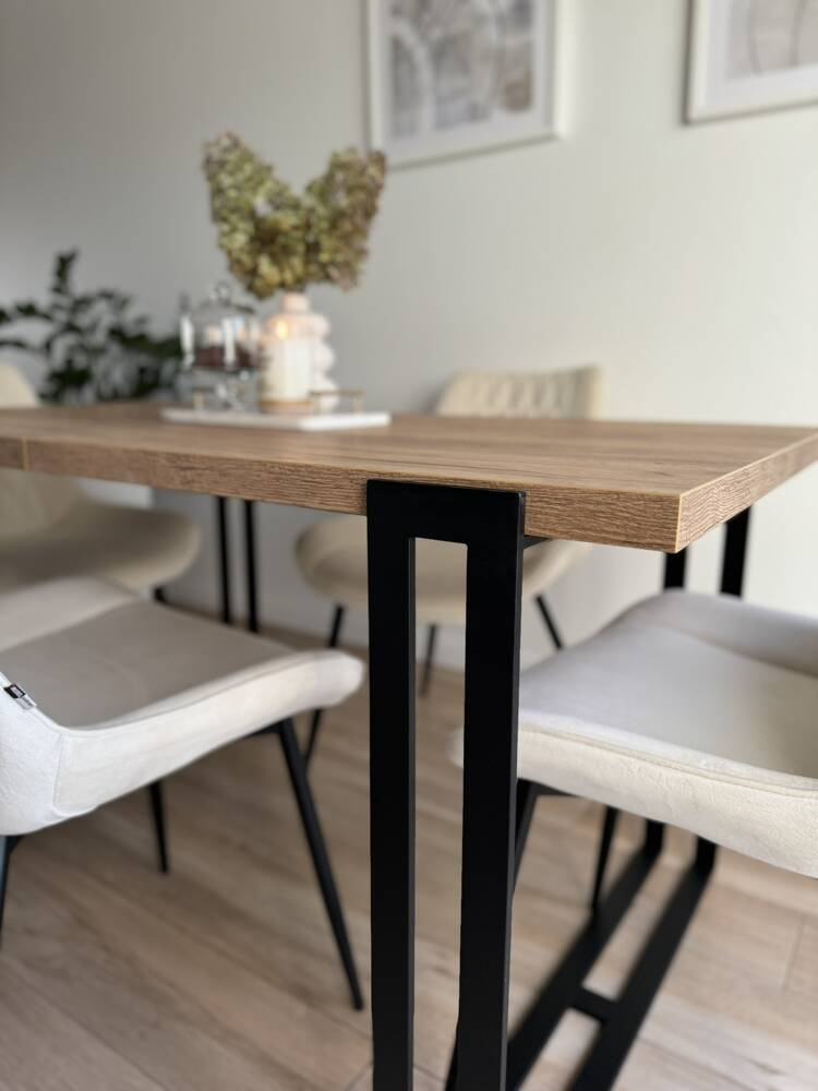 Hur ser ditt drömmatbord ut? Rymligt, i nyanser av trä, gediget konstruerat? Om så är fallet, se till att kolla vårt Horten-bord, som kommer att tillföra en industriell karaktär till alla rum!Matsalen är hemmets hjärta och det viktigaste i den är förstås ... bordet! Ibland behövs inte mycket för att uppnå spektakulära effekter i inredningen. Allt du behöver är en rätt utvald möbel som kommer att fånga uppmärksamheten hos alla som kommer in i din matsal. Så vilka egenskaper måste det perfekta bordet ha? Det måste vara stort, rymligt, hopfällbart, lätt att använda, men samtidigt snyggt och med en intressant design. Det finns många krav, men vi har en modell som uppfyller alla dessa förväntningar. Vi pratar om vårt Horten-matbord. Denna modell har en stor bordsskiva i en ek craft färg, monterad på intressanta ben av starkt stål, målade två gånger i svart. Benen är pulverlackerade, tack vare vilken färgen är hållbar och jämnt belagd på hela ytan. Horten-förlängningsbord är den perfekta lösningen för människor som letar efter en kombination av elegans med utmärkt utförande. Bordet är kombination av trä- och metallimitation. Detta unika bord kommer att göra dig glad under dina dagliga aktiviteter. Det kommer att lägga till en modern stil och originalitet till interiören. Bordsskivans yta är 140x80 cm. Dessutom kan du fälla ut det till större storlekar när som helst. Horten är ett utdragbart bord och har två insatser, vardera 50 cm breda. Tack vare detta kan du förstora bordet med upp till en meter och skapa platsen för hela familjen.