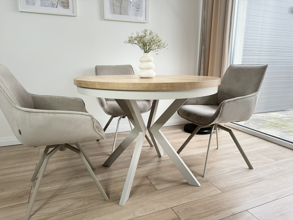 EDWARD förlängningsbord är tack vare sina små mått perfekt för en liten matsal, ett kök eller ett vardagsrum. På bara några minuter kan du enkelt förlänga det från 120 cm till 160 eller till och med 200 cm genom att fästa extra insatser. På så sätt behöver du inte oroa dig för var du ska placera dina gäster. Den här modellen är utrustad med en 5 cm snygg kant under toppen, så att löparna täcks och det hela ser elegant ut.