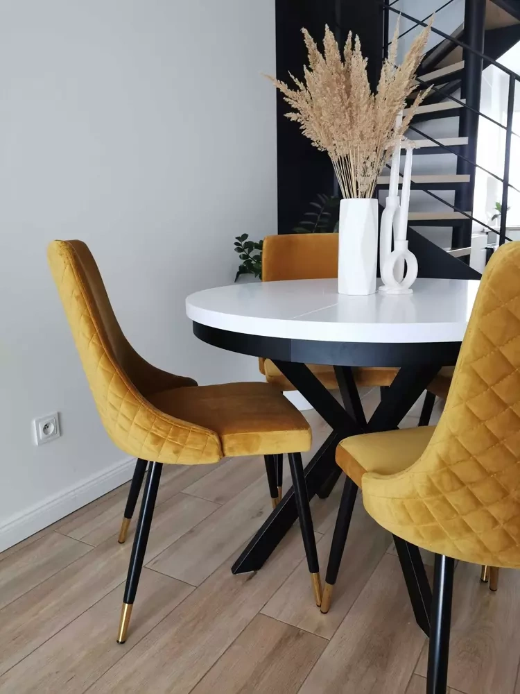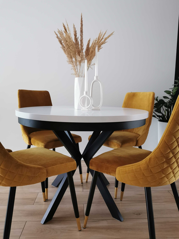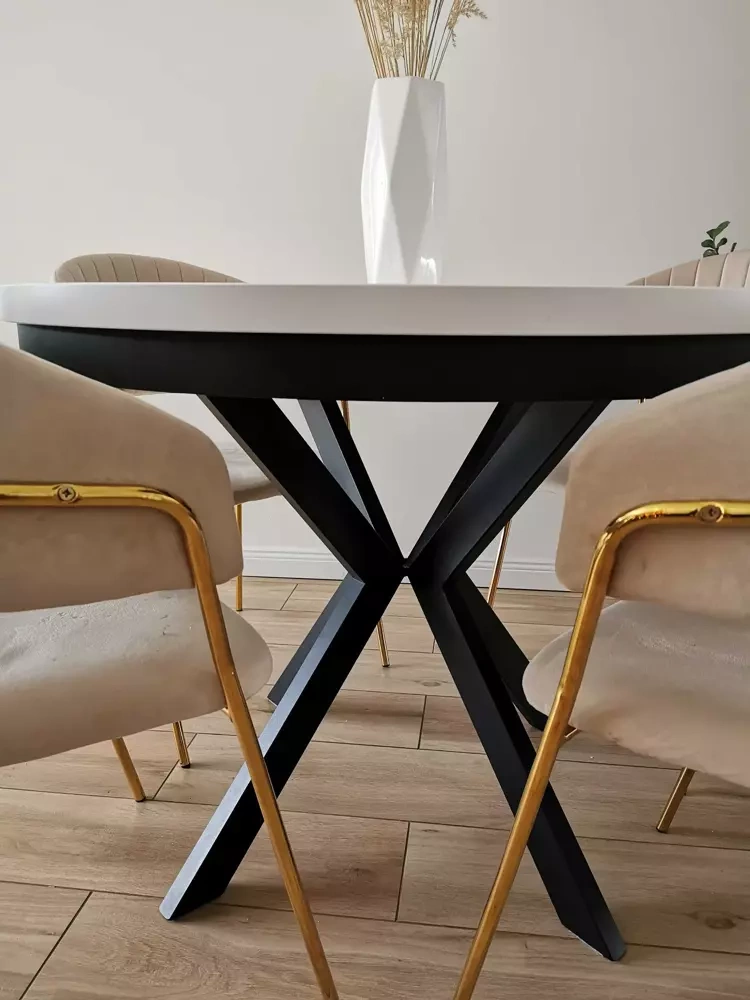 Bordet har sin stabilitet tack vare de fyra metallbenen. Var och en av dem är tillverkad av 6x3 cm tjockt stål och pulverlackerad, vilket garanterar ett gediget hantverk och hållbarhet i många år. Edward-utdragsbordet utmärker sig med sin distinkta och eleganta design - det kommer garanterat att göra ett starkt intryck i alla rum som det placeras i. Runt matbord har fördelen att de tar liten plats och är vackra. Den passar perfekt in i moderna, eleganta och klassiska inredningar.