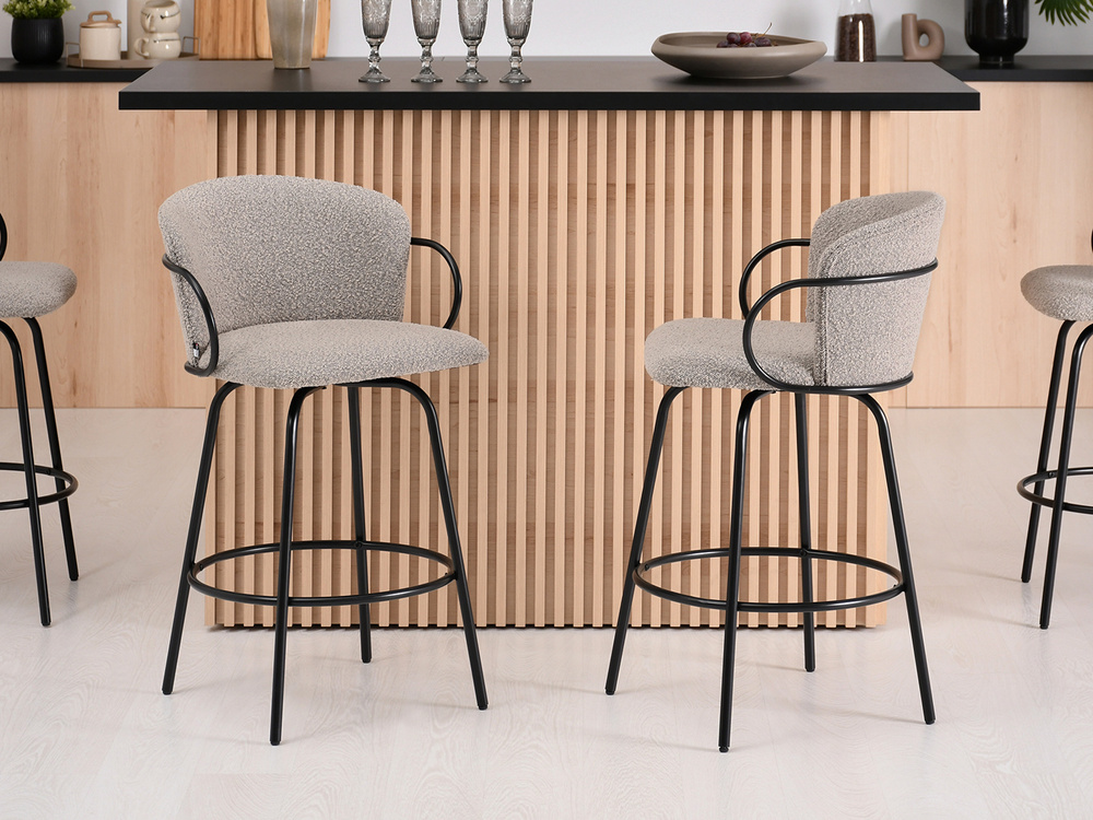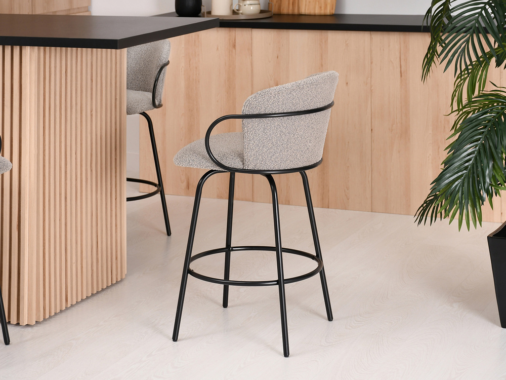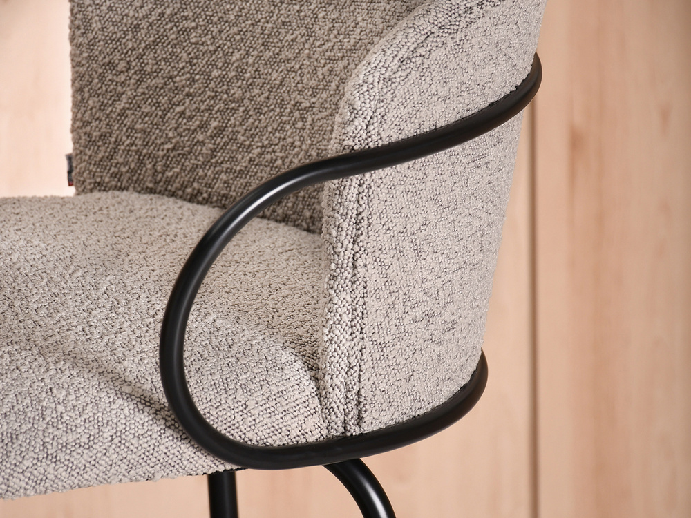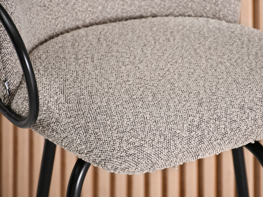 - Material i sits - sitsen är tillverkad av stoppningsskum och boucle-tyg och är inte bara bekväm utan också estetiskt tilltalande och behaglig att ta på.
