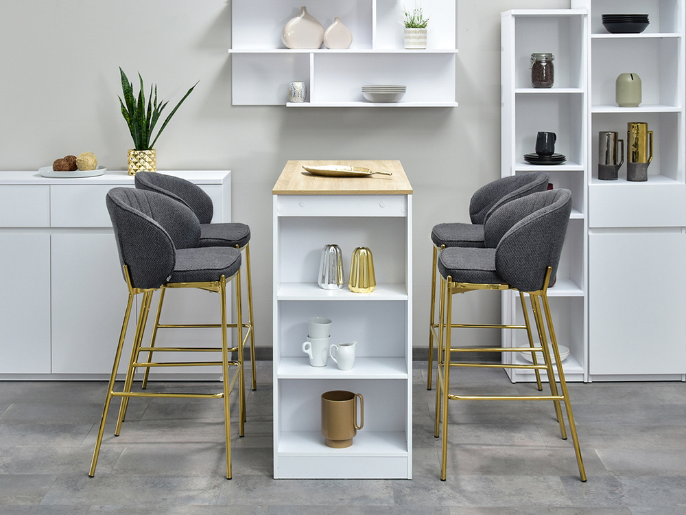 FABIO hocker är inte bara en möbel, utan också ett uttryck för din smak och din känsla för detaljer. Dess grafitfärgade säte kombinerat med gyllene ben skapar en harmonisk helhet som fångar blicken och ger karaktär åt inredningen. Tack vare den robusta konstruktionen och användningen av högkvalitativa material tål den här hockern att användas varje dag, vilket gör den till en investering för många år framöver.