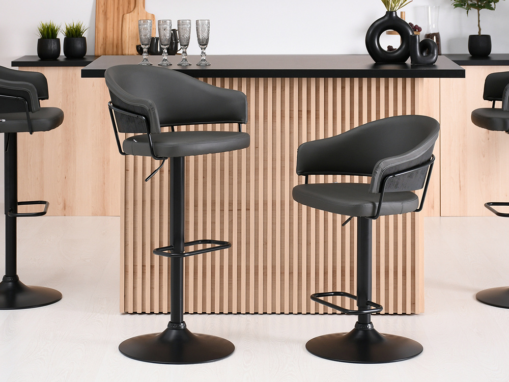ROTTO hocker utmärker sig inte bara genom sin estetik utan också genom den höga kvaliteten på sitt utförande. Bas i metall ger stabilitet och stoppningsskum i ekologiskt läder de använda sätena garanterar komfort och hållbarhet. Finns i eleganta färger: svart i grafit, vilket gör den lätt att passa in i en mängd olika inredningslösningar.