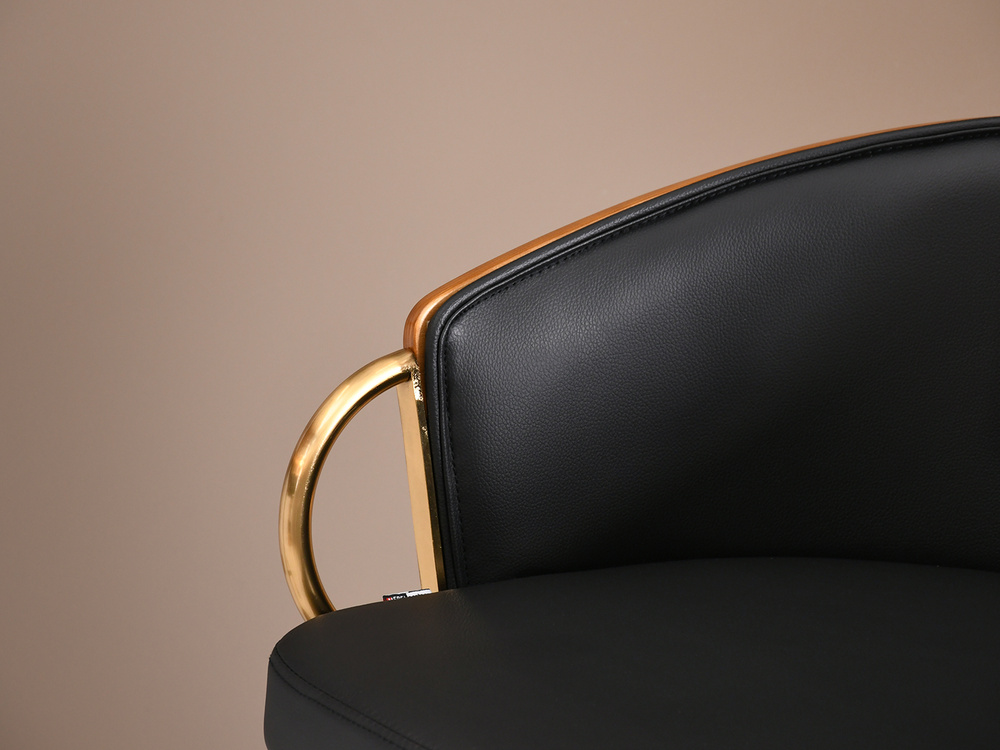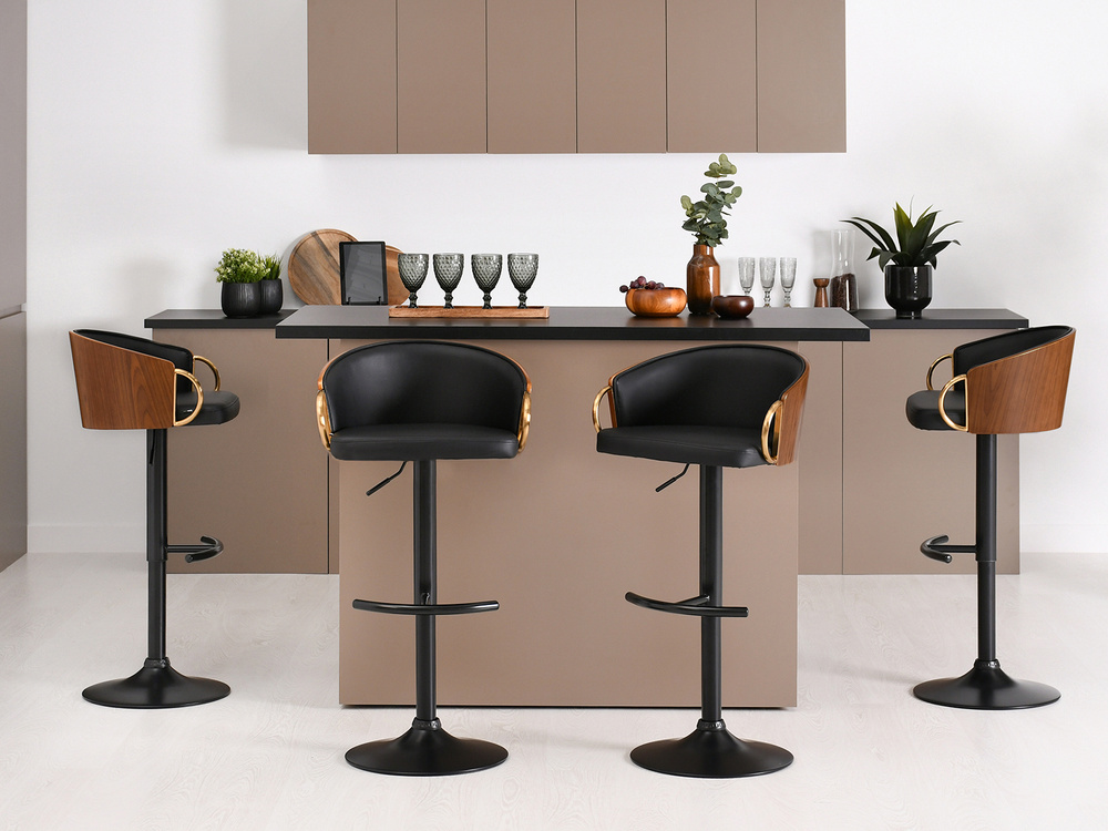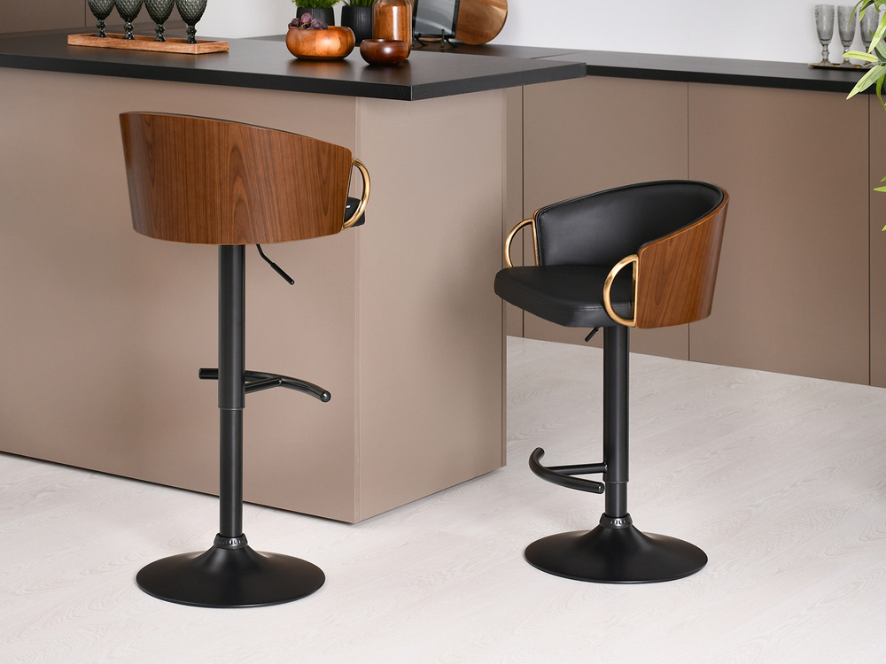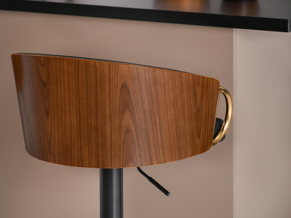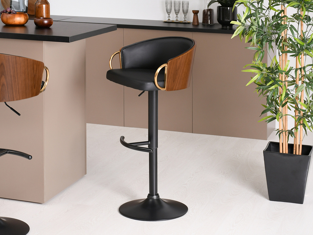 Svängbar hocker svarta ben svart/guld/valnöt ELVIRA