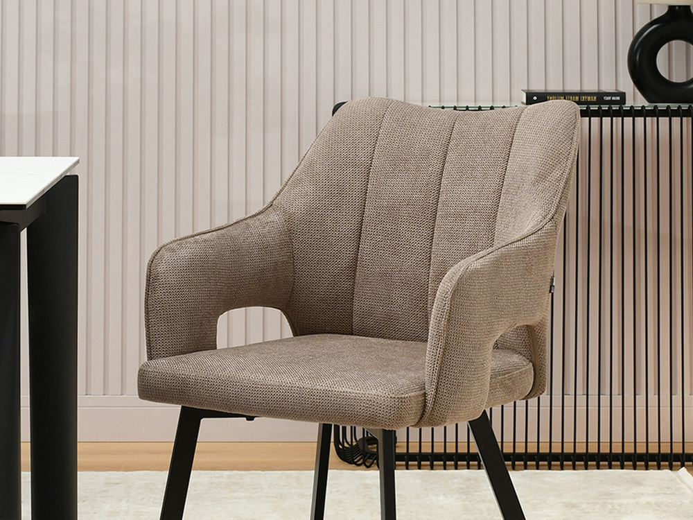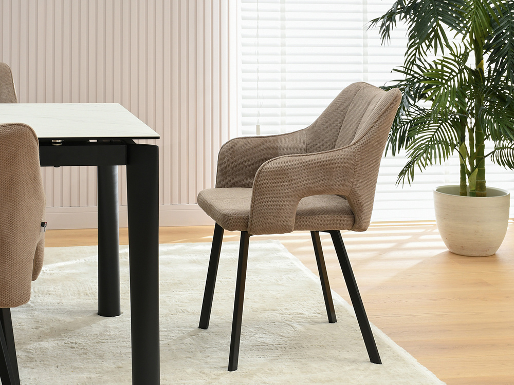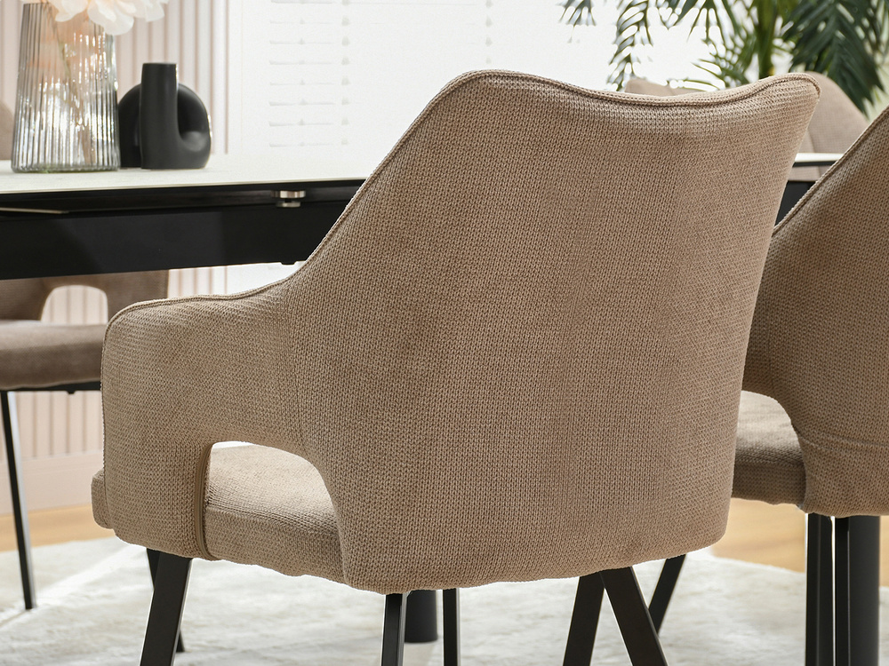 CORBET-stolen är inte bara en möbel utan också ett dekorativt element som ger karaktär åt varje interiör. Hans svarta ben kontrast med beige sits, skapa en harmonisk och modern komposition. Tack vare sin mångsidighet fungerar den här stolen i en mängd olika miljöer, från minimalistiska till mer sofistikerade.