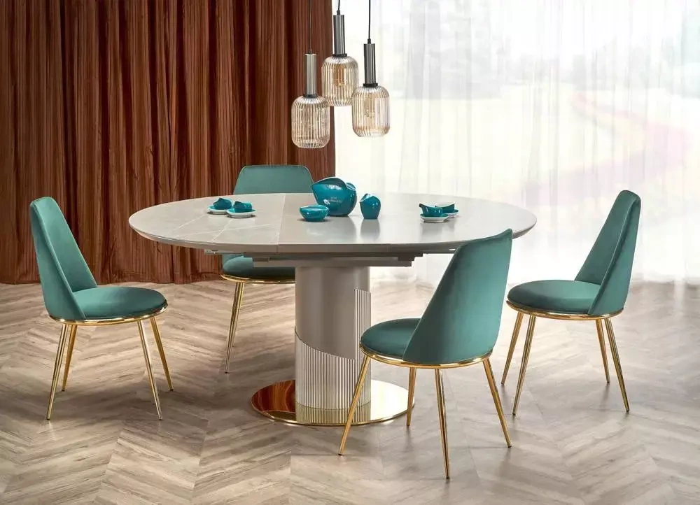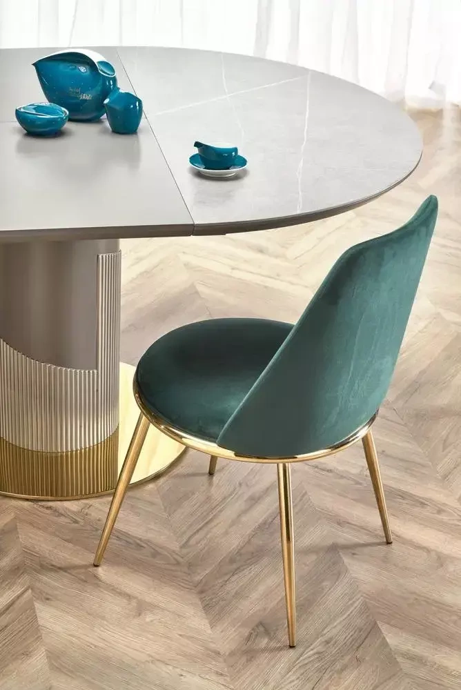 Velour grön matstol K460 är ett extremt vackert förslag som ingen kommer att passera likgiltigt förbi. Det räcker att kombinera dem med ett modernt, ljust bord för att skapa en bekväm och snyggt presenterad matsal som erbjuder möjligheten att äta en måltid i en trevlig atmosfär, samt ett bekvämt mottagande av gäster.