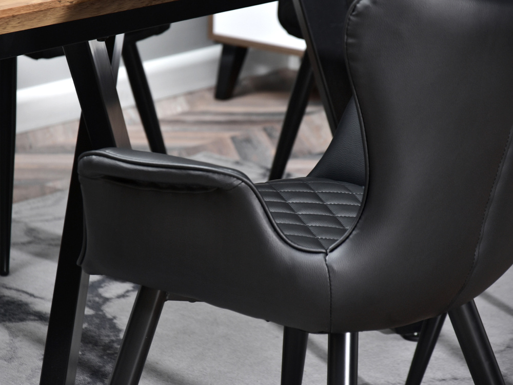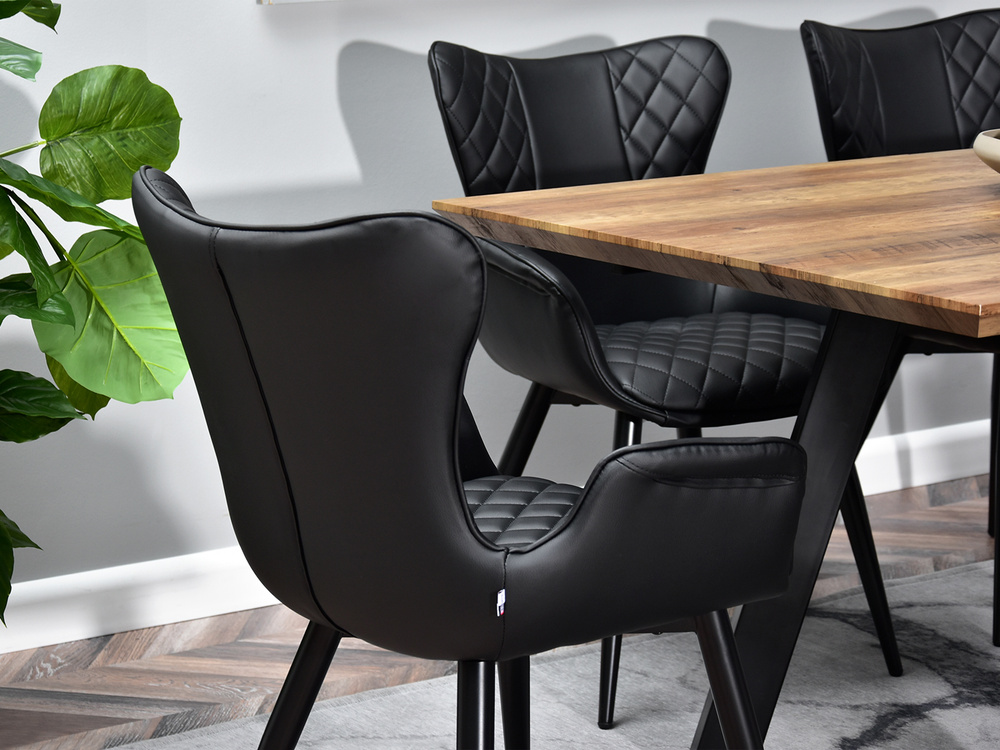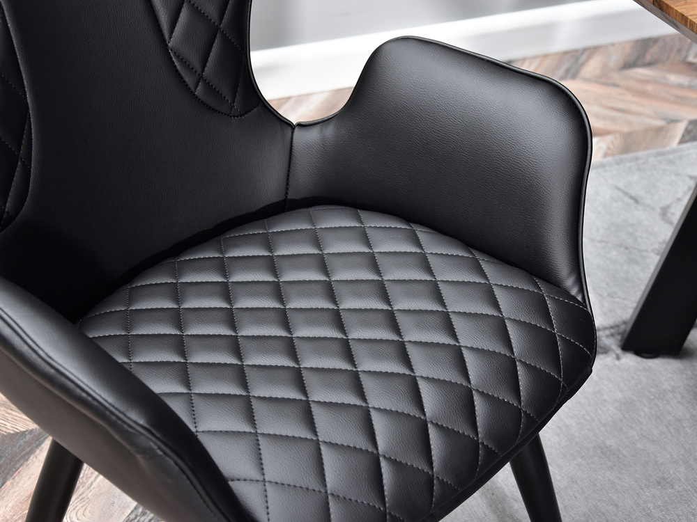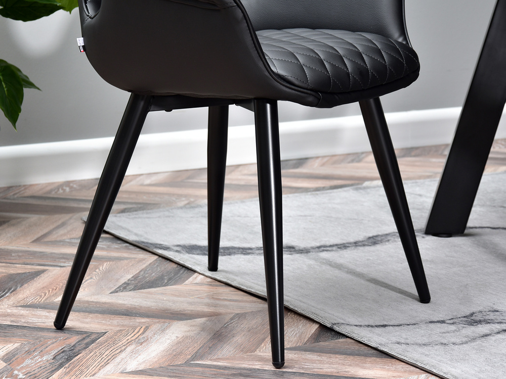 Välj KAMAL svart läderstol för att skapa en elegant och bekväm plats att arbeta eller koppla av på. J