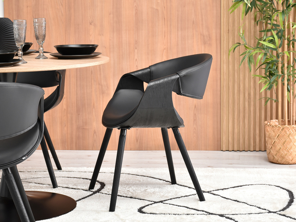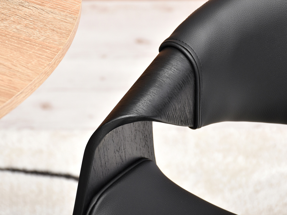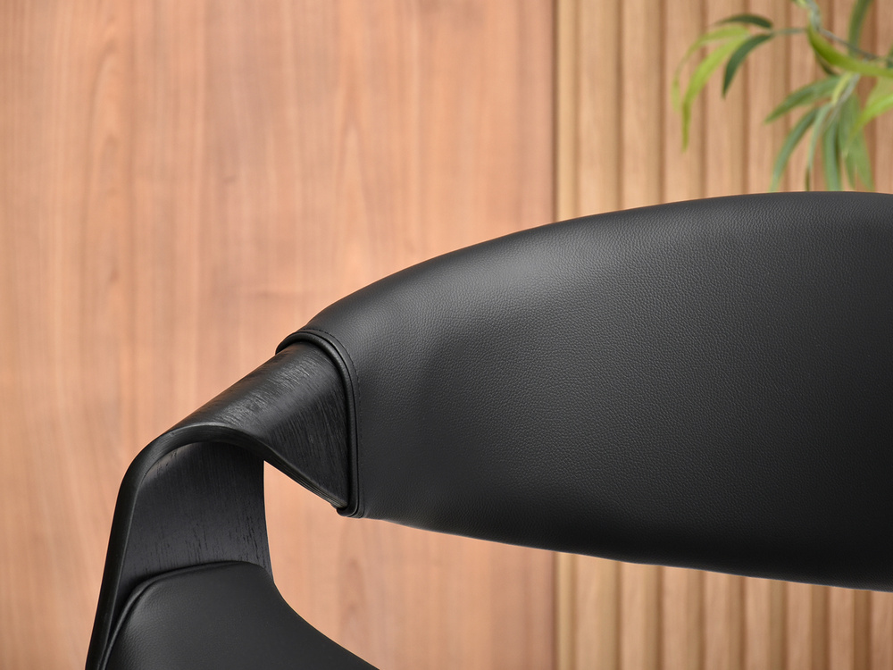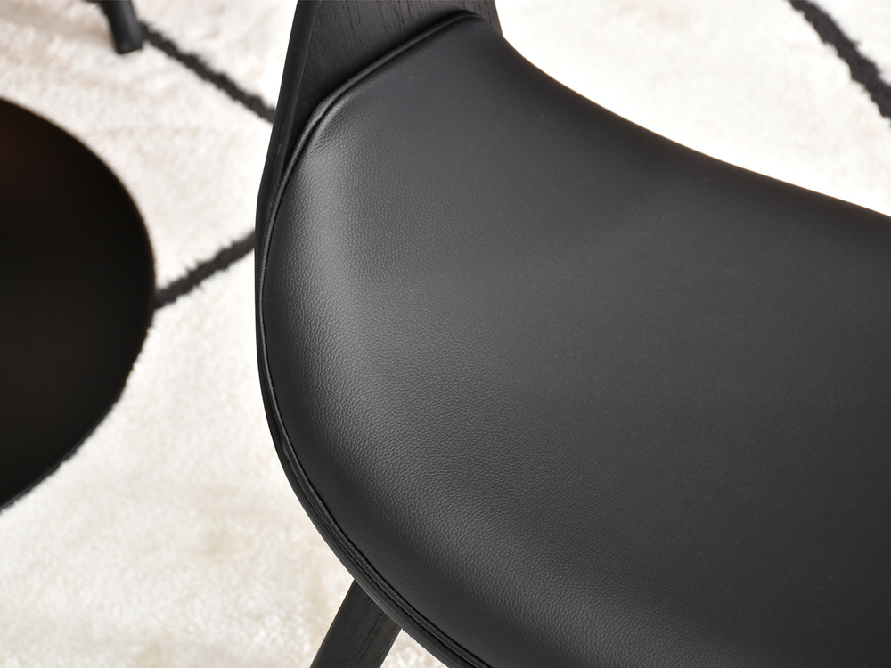 - Svart säte - tillverkad av stoppningsskum, klädd med ekologiskt läder och fanér för komfort och enkel rengöring.