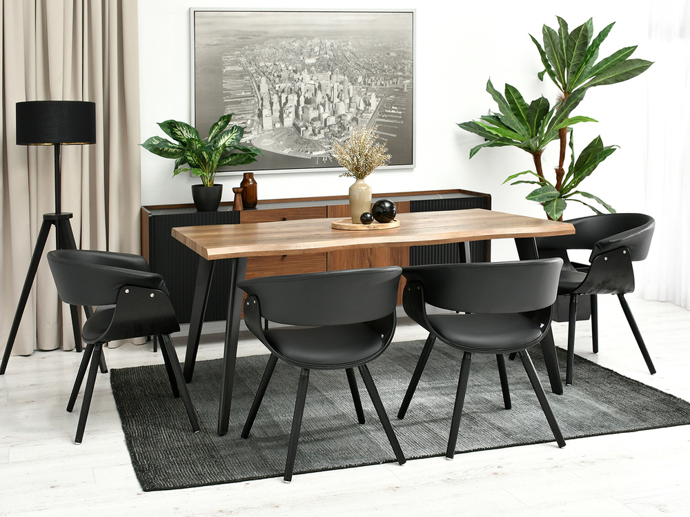 ELINA-stolen har utformats med komfort och estetik i åtanke. Tillverkad av högkvalitativa material som tyg, stoppningsskum och faner, ger den bekväma sittplatser även under långa arbetstimmar eller socialt umgänge. Den lätta konstruktionen på endast 7 kg gör det enkelt att flytta och ordna utrymmet efter dina behov.
