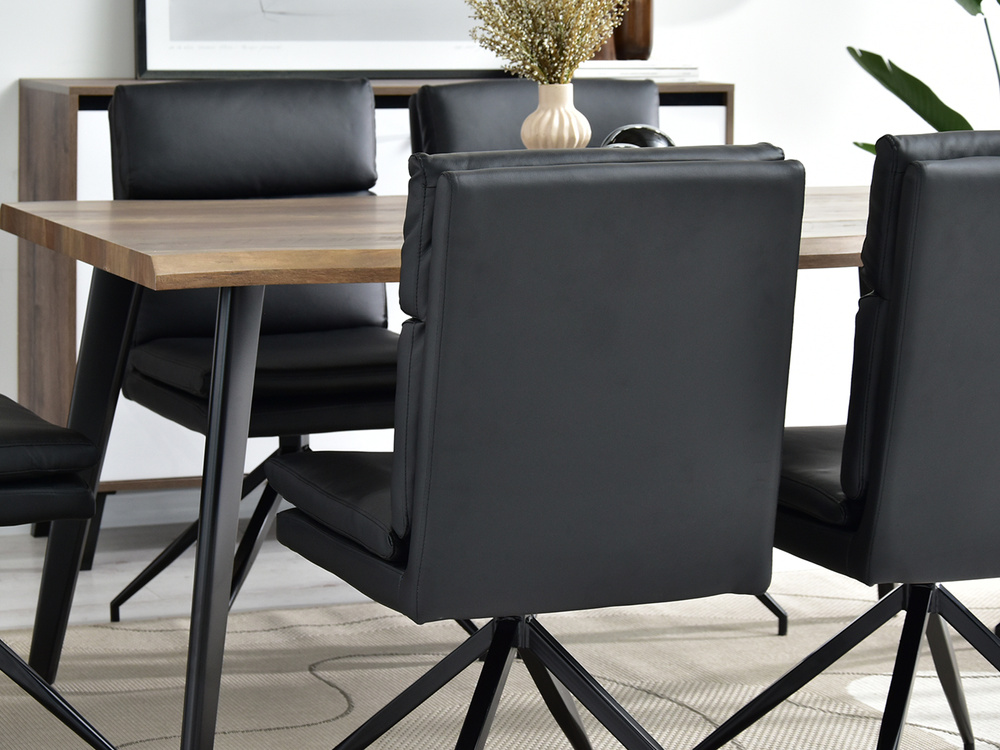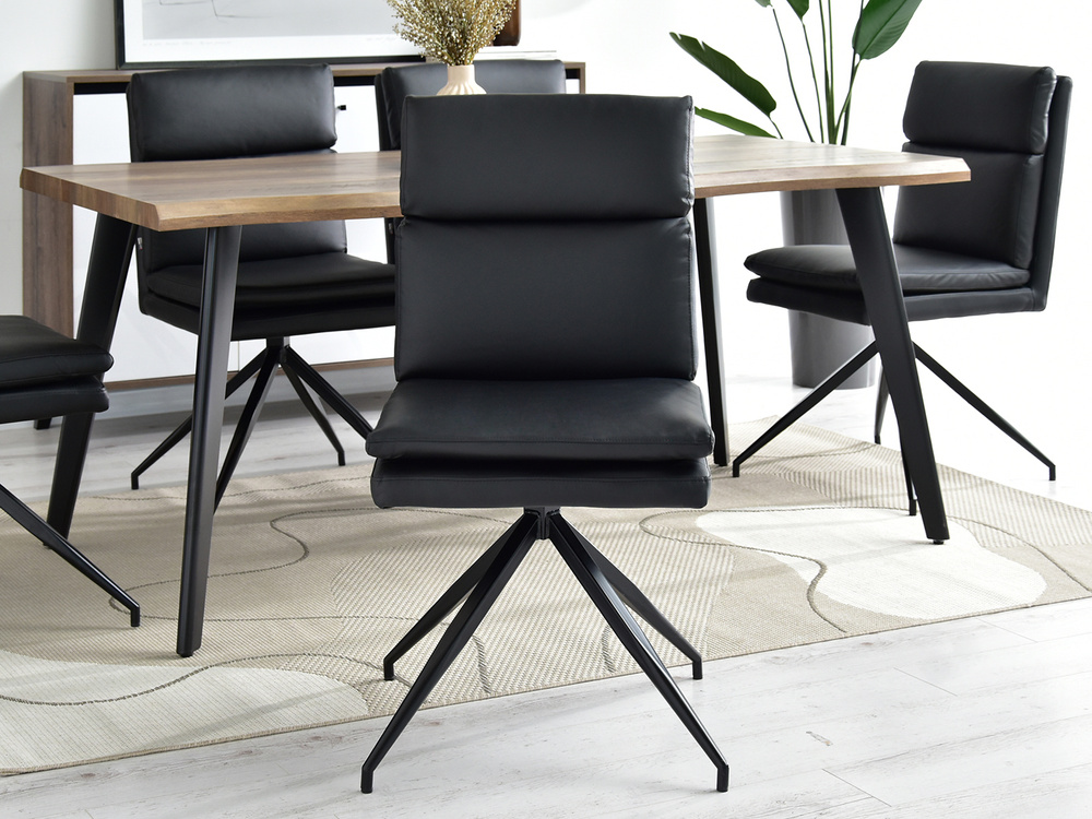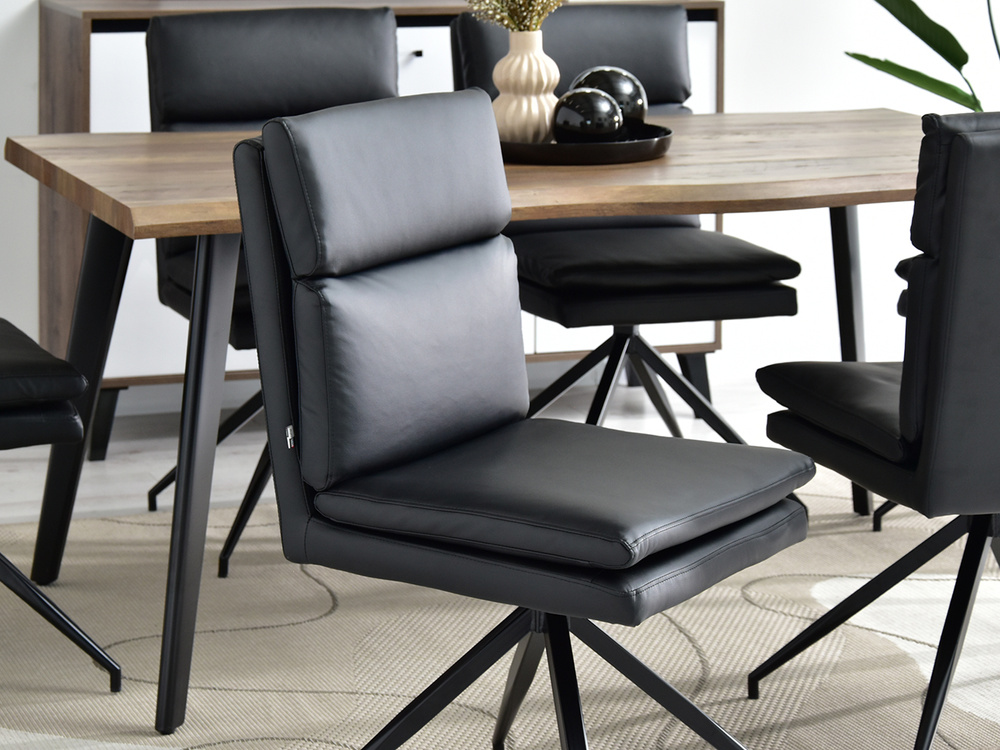 RALPH svart läderstol med svarta ben är idealisk för dem som uppskattar elegans och modern design. Tack vare sin universella form och sina högkvalitativa material passar den perfekt in i både kommersiella lokaler, samt i hemmiljöer som t.ex matsalen om köket. Dess industriella i modern stil gör den till en möbel som fångar blicken och ger karaktär åt varje interiör.