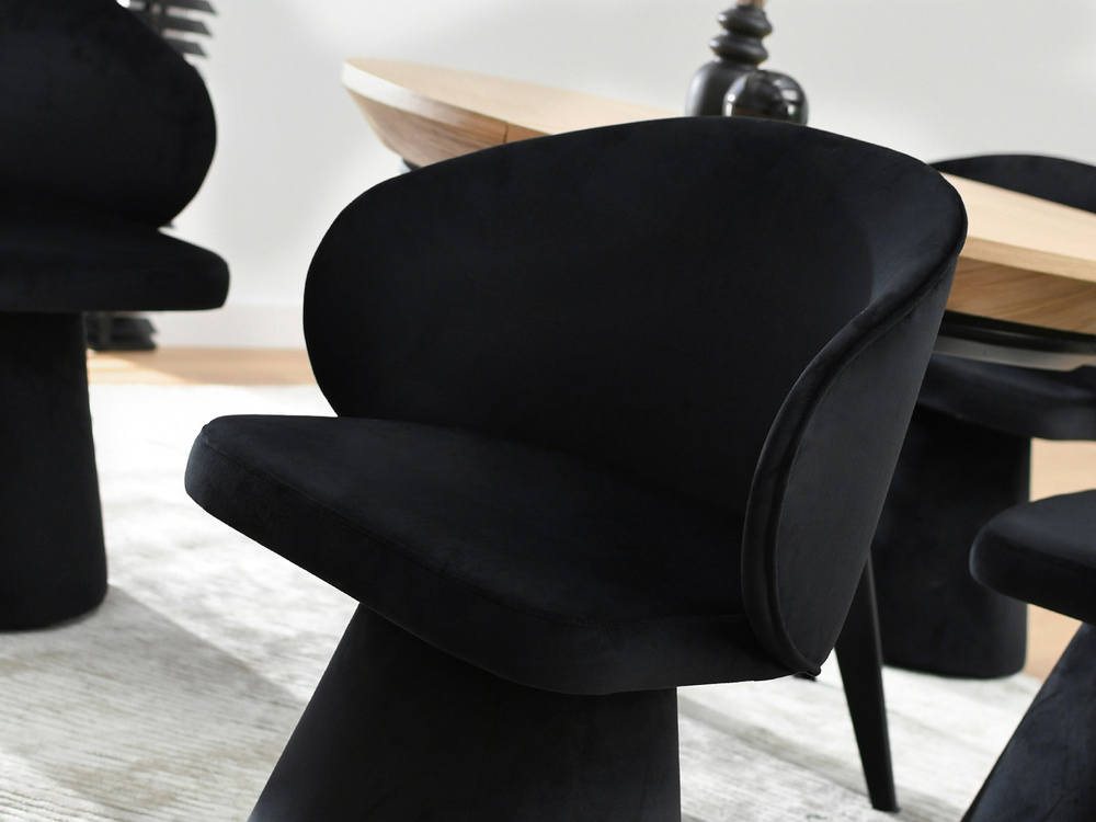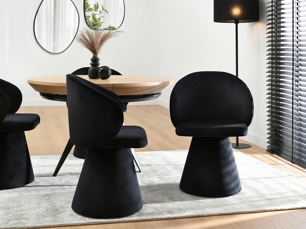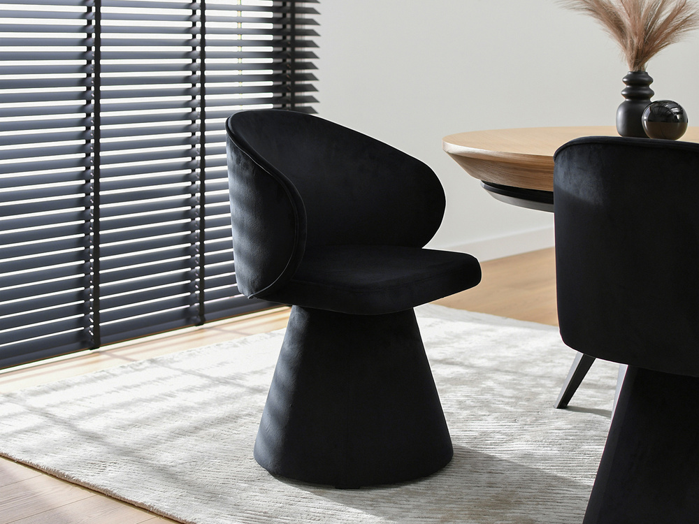 Stoppad svart matstol, snurrbar, ben i velour SOLEA