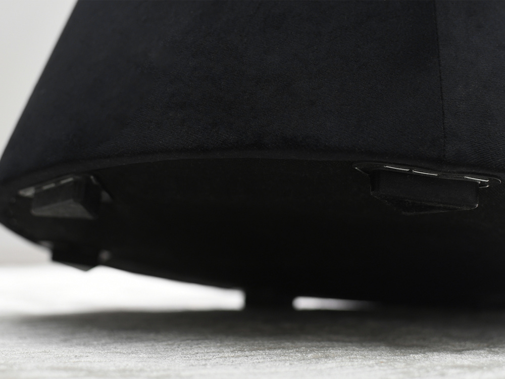 - Klädsel i svart velour, behaglig att ta på och lätt att sköta.