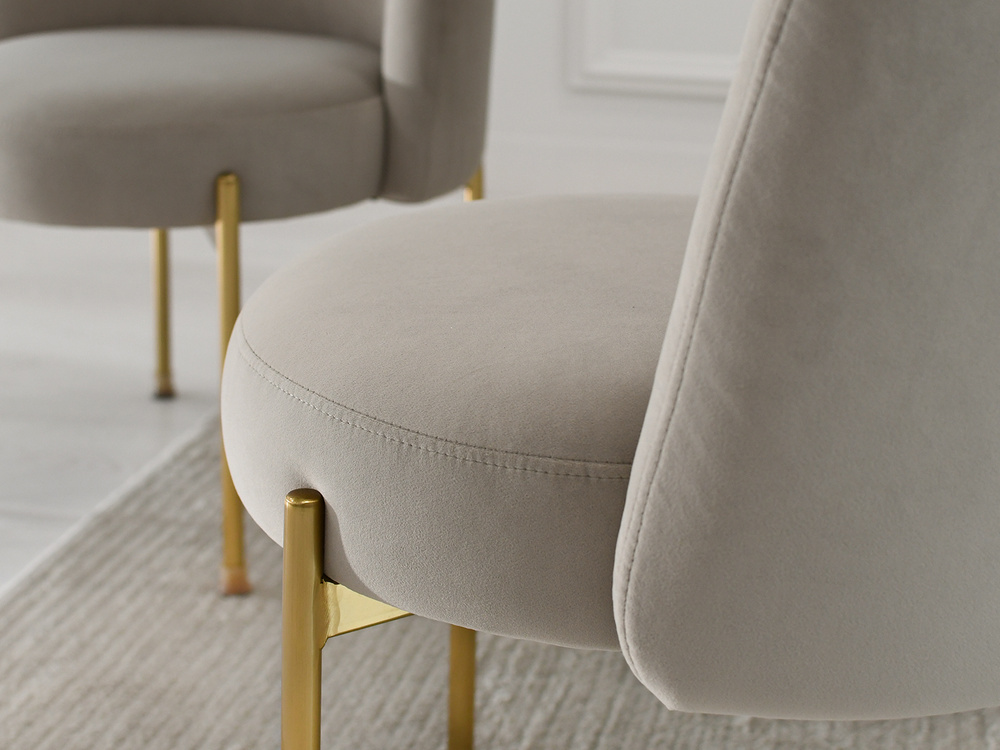Den beige velourstolen med gyllene ben CHARLOT är den perfekta kombinationen av elegans och funktionalitet, som passar perfekt in i den moderna inredningsstilen och glamour. Tack vare sin unika design kommer denna stol att bli en höjdpunkt i alla rum där den placeras.