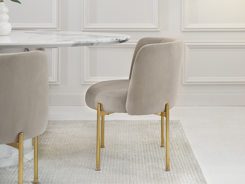 CHARLOT-stolen är inte bara en möbel, utan också ett dekorativt element som kommer att framhäva karaktären i din inredning. Dess beigea säte kombinerat med gyllene ben skapar en harmonisk helhet som fångar ögat och ger elegans till alla rum.