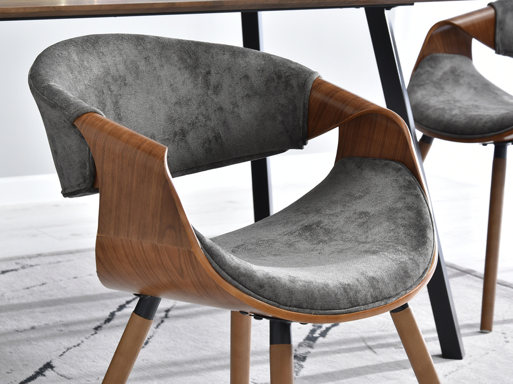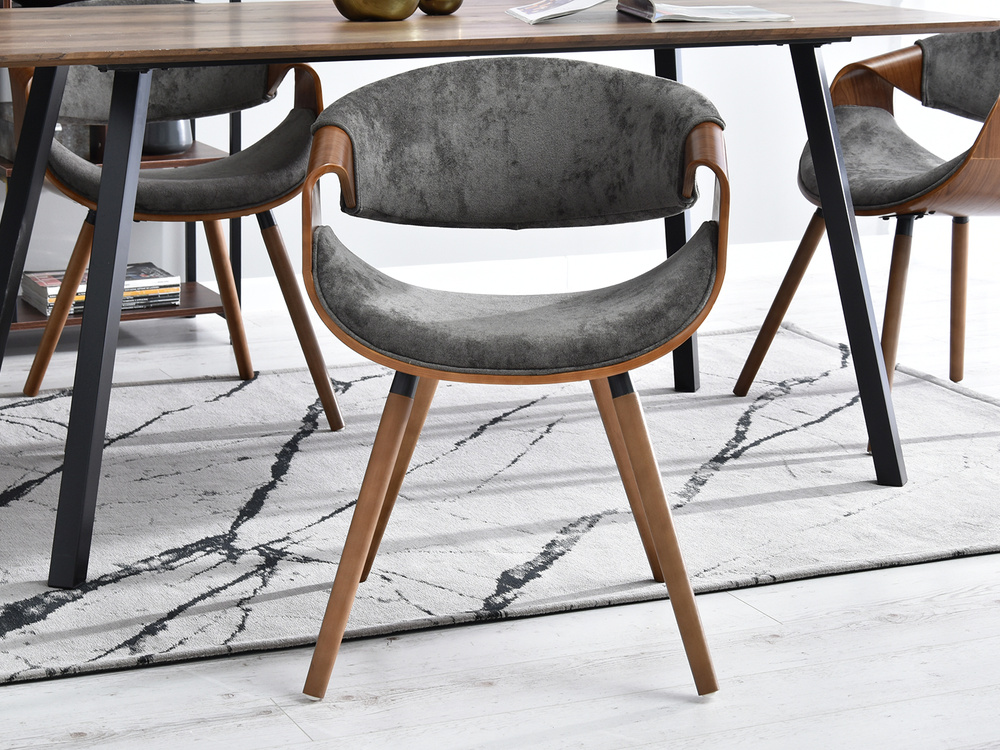 Velourstol grå svart träben BENT