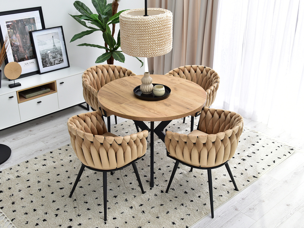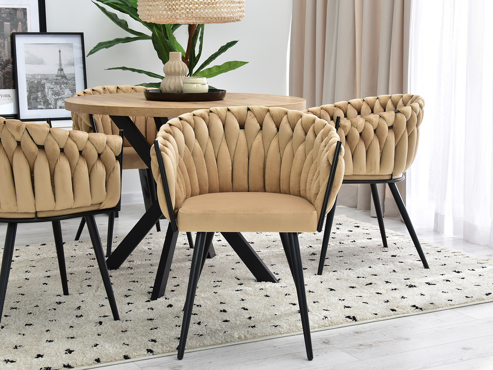 - Modern stil - den minimalistiska formen och sitsens karamellfärg, i kombination med de svarta benen, skapar ett elegant utseende som passar en mängd olika inredningsdesigner.