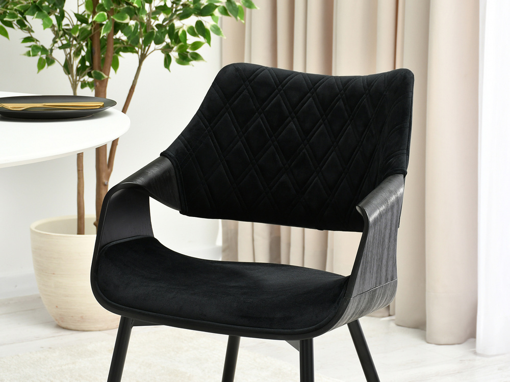 - Svart säte - tillverkad av mjukt velourtyg som ger sittkomfort och ger en lyxig känsla till inredningen.