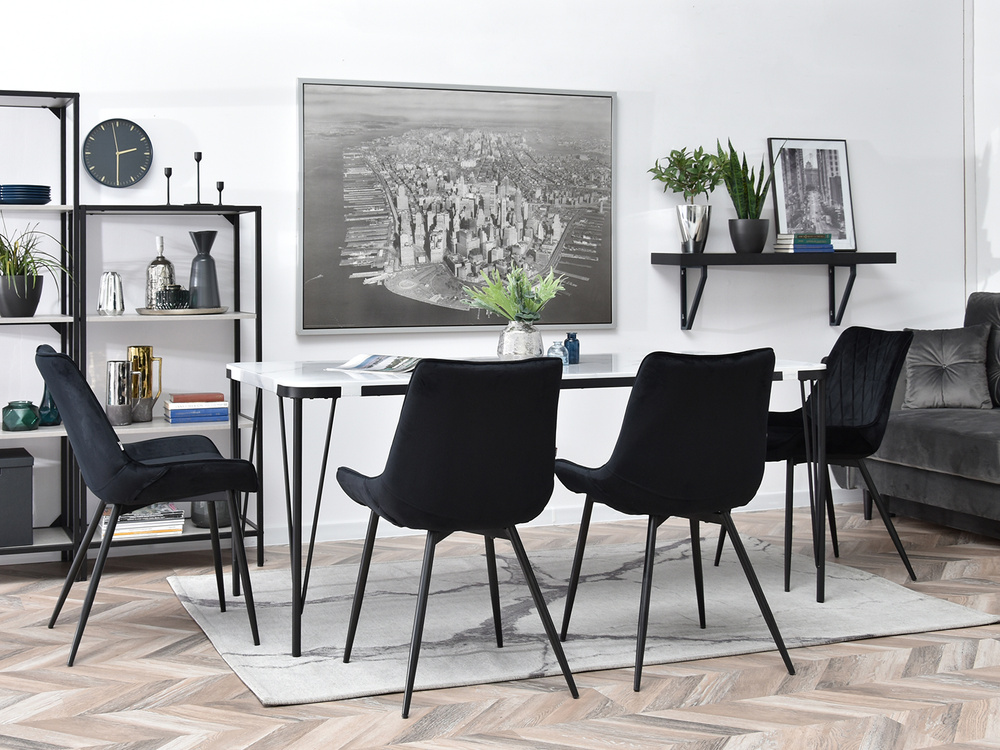 Velourstolen ADEL är den perfekta kombinationen av elegans och funktionalitet, som passar perfekt in i den industriella stilen i modern. Tack vare sin unika design kommer denna stol att bli en höjdpunkt i alla inredningar, oavsett om det är ett kontor,matsal,affärslokaler,barnrum,studio hemma om utställningslokal.