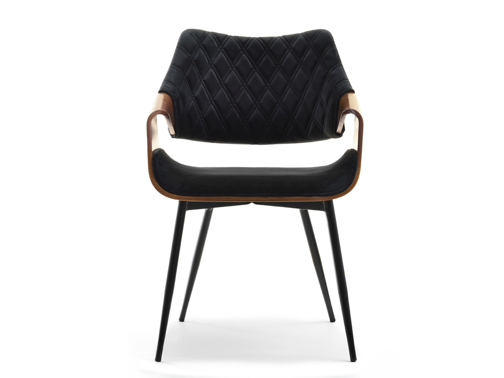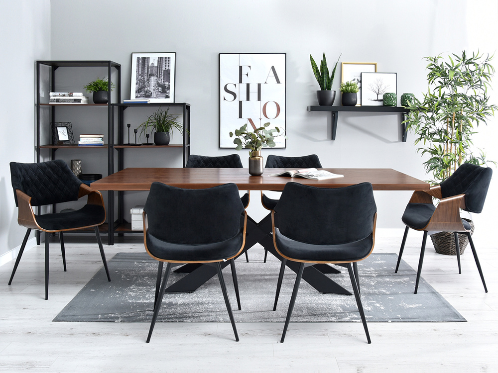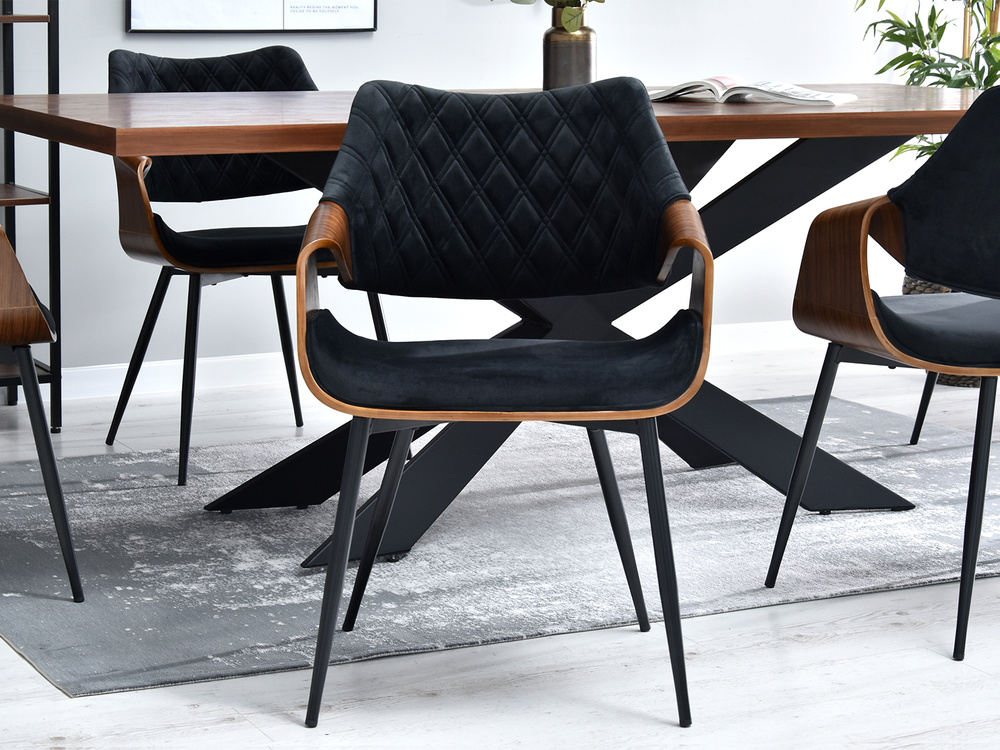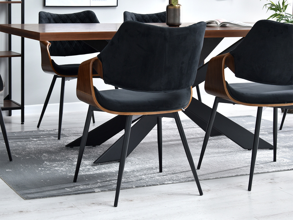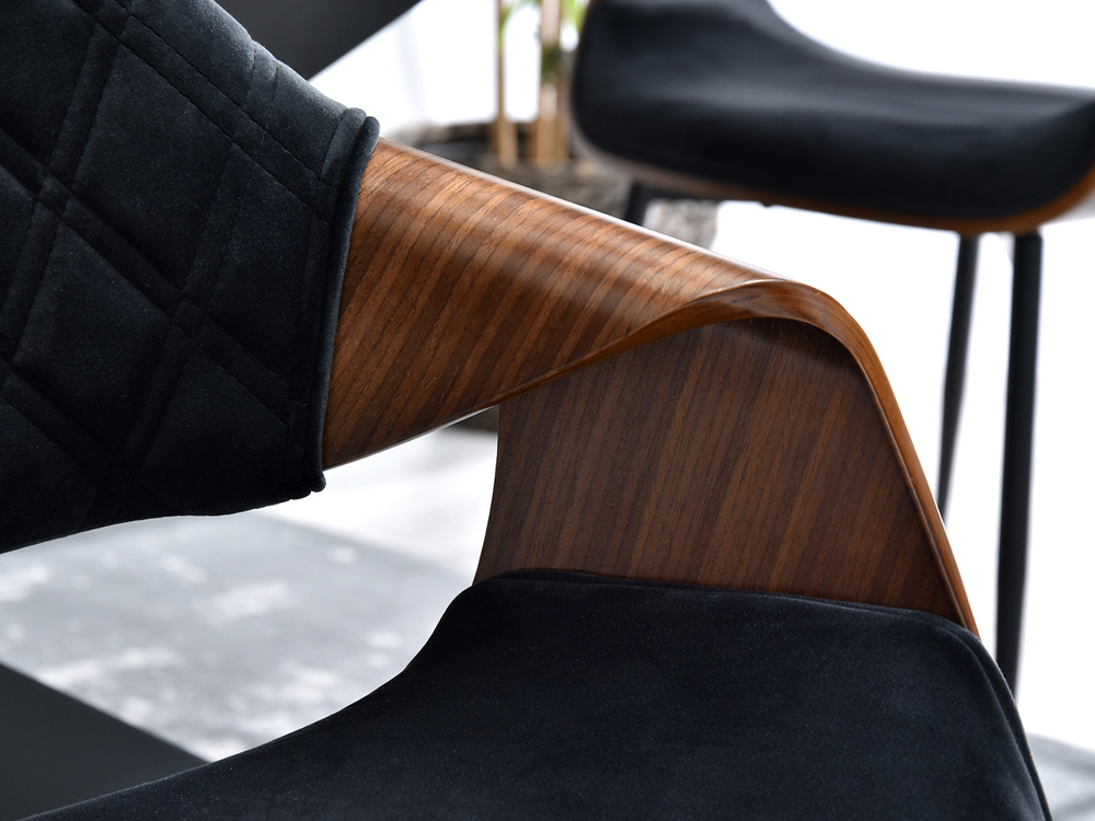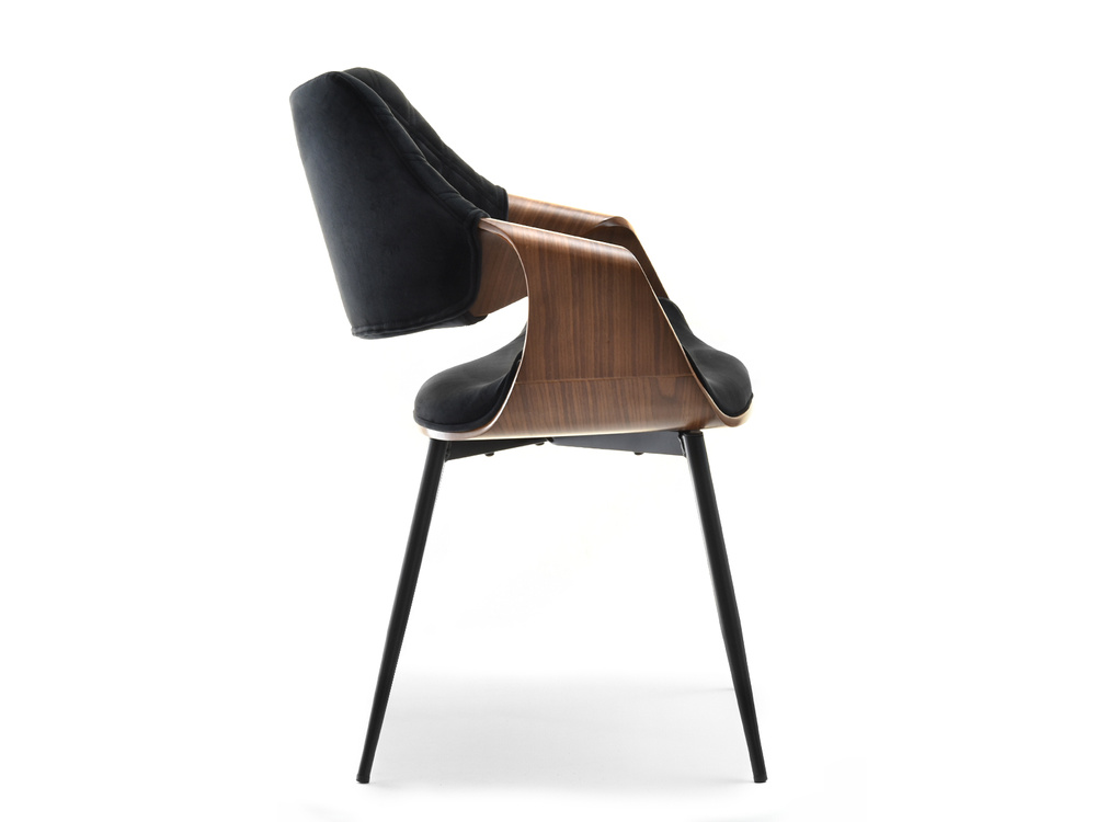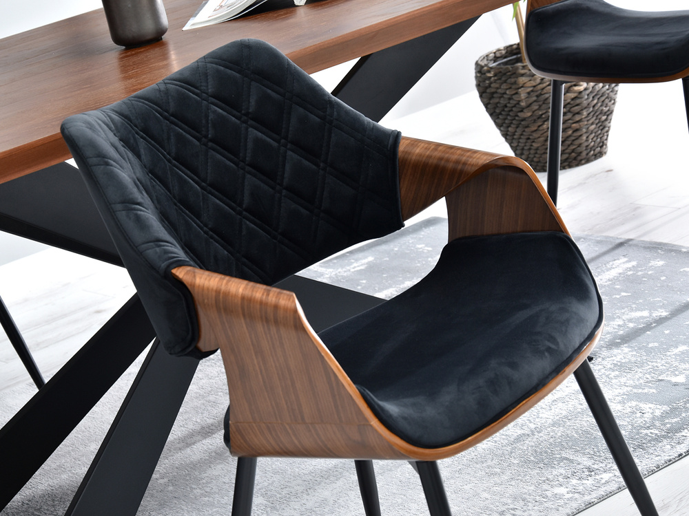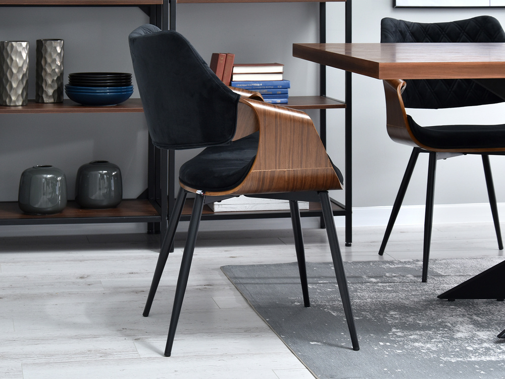 Velourstol svarta ben svart/valnöt RENZO
