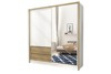 SARA sovrumsgarderob är den perfekta lösningen för människor som värdesätter enkelhet och elegans. SARA skjutgarderob är perfekt för att förvara en mängd olika kläder, inklusive de som behöver hängas. Inredningen i garderoben är uppdelad i två olika zoner: den första består av rymliga hyllor och två djupa lådor. Den andra zonen består av den rymliga fördjupningen med klädstång och en hylla. Tack vare detta kommer även den minsta sak att hitta sin plats här, och du kommer att glömma det långa sökandet efter din favoritblus eller en handväska som matchar din outfit. En annan fördel med denna garderob är en stor spegel där du enkelt kan se dig själv innan du går till jobbet. Garderob med en stor spegel kommer att lysa upp rummet och förstora det optiskt.