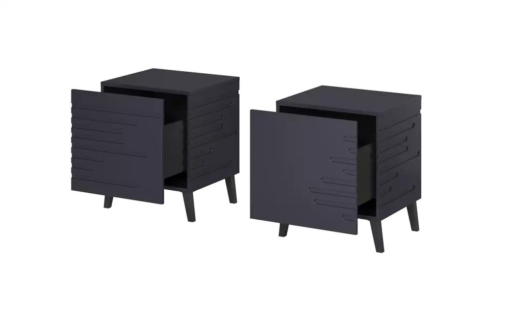 Det hela är designat på ett sådant sätt att det tar väldigt lite plats. Multifunktionella sängbord kommer att vara perfekta inte bara i ditt sovrum utan också i vardagsrummet. Möblerna kommer att harmonisera mycket väl med resten av interiören. Särskild uppmärksamhet dras till mönstret på den laminerade skivan. Ett sängbord med en låda kommer att rymma alla dina förnödenheter som tidigare saknat utrymme. Du kan sätta glasögon eller din favoritbok i den. Du har alltid allt till hands. Observera att sängbordet på vinden inte har något handtag. Fronterna sticker ut ovanför bänkskivan. Produkten kommer att vara en lämplig lösning för fans av enkla och fashionabla lösningar. Du kan också sätta en nattlampa på skåpet. Det snygga sängbordet är stabilt tack vare eleganta svarta ben. Möblerna ser väldigt lätta och estetiska ut. Setet är tillverkat av högkvalitativa material. Dessa sängbord är ett bra val.