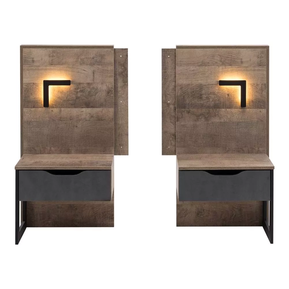 Två sängbord med LED belysning, ek sandgrange ARDEN