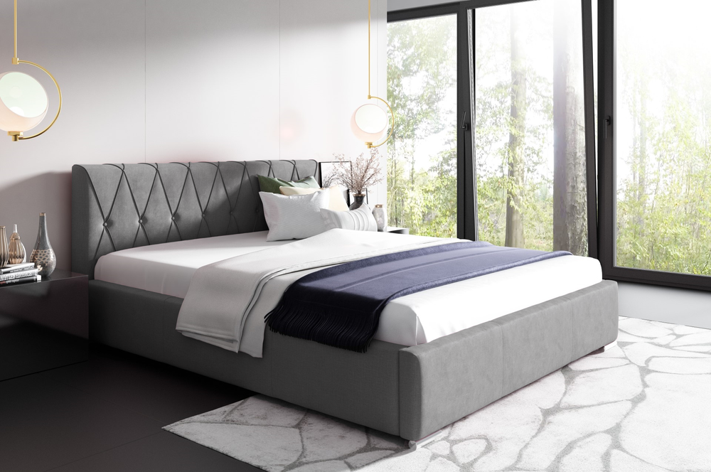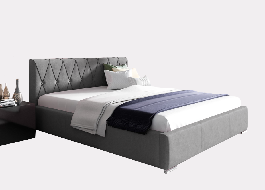 Stoppad säng MANGO är en mycket funktionell och modern möbel som passar alla interiörer. MANGO-sängen är en klassisk dubbelsäng med sänggavel. En enkel sänggavel är gjord av 3 cm tjockt skum, den har noggrant och estetiskt gjorda mönster som kommer att vara en snygg dekoration av hela rummet. Vadderade dekorativa stift användes vid skärningspunkten mellan linjerna. Sängen har en behållare för sängkläder, en metallram med 34 fjäderribbor och gaslyftar som underlättar lyft. Sängen är gjord av ett velourtyg som är lätt att rengöra. Rengör endast med milda möbelvårdsprodukter. Blek inte (klor). Stryk inte. Torktumla ej. Inte kemtvättas.