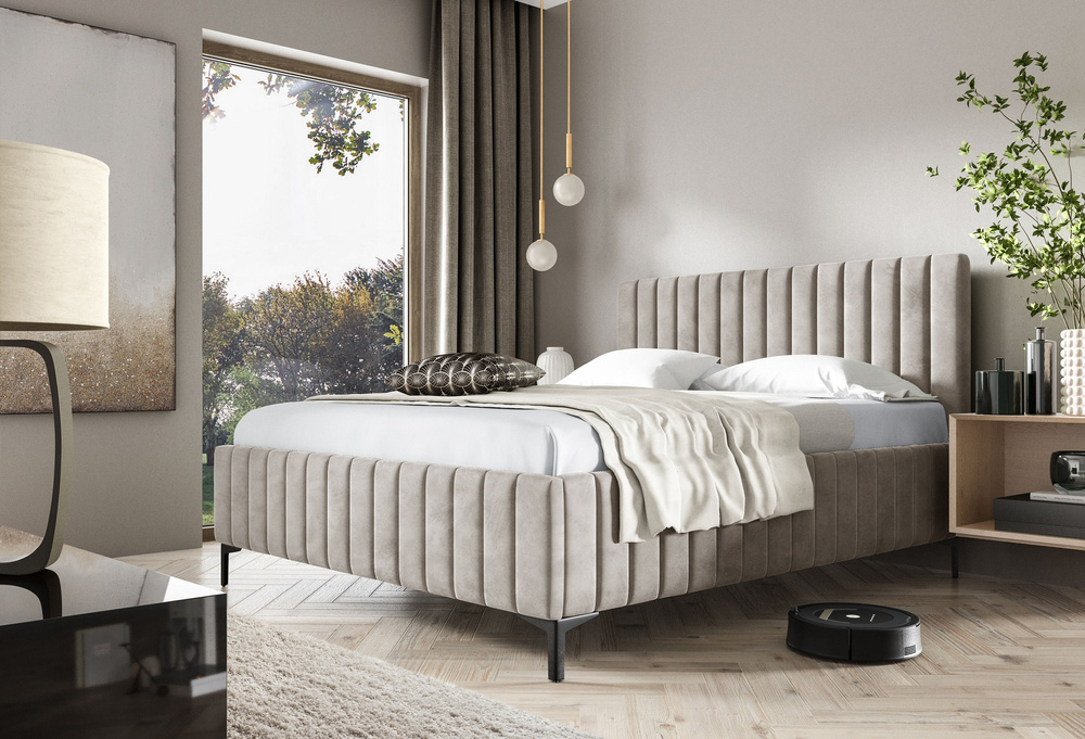 MILETTO säng med sänggavel är ett förslag som riktar sig till människor som värdesätter komfort under stunder av avkoppling. MILETTO sovrumssäng är stoppad med mjukt skum och har dekorativa vertikala sömmar, vilket bidrar till dess unika utseende. Huvudstödet fungerar inte bara som ett bekvämt ryggstöd utan skyddar också effektivt väggen från eventuella skador och dekorerar samtidigt sovrummet vackert.