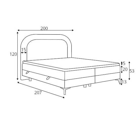 Melany kontinentalsäng är ett sant mästerverk av raffinerad design och komfort. Den imponerar med sin ursprungliga, stoppade, rundade sänggavel, som inte bara ger elegans, utan också säkerställer exceptionell komfort under avkoppling. Karakteristiskt rundade hörn ger den en subtil charm, som framhäver dess unika karaktär. Sängramen, gjord av trä och klädd med tyg av högsta kvalitet, är ett perfekt komplement till möbelns moderna design. Dess eleganta finish och noggranna detaljer gör den inte bara till en sovmöbel utan också ett dekorativt element som ger rummet en unik karaktär. Den stoppade sängen är designad för dig som värdesätter harmoni och frid i interiören. Dess dämpade, eleganta form är perfekt för både moderna arrangemang och mer klassiska stilar. Tack vare detta blir sängen en universell utrustning som fungerar i alla rum. Sängen är utrustad med två bekväma och rymliga bonnelmadrasser som garanterar en hälsosam och bekväm sömn. Deras exceptionella flexibilitet och hållbarhet gör att de ger optimalt stöd för kroppen under sömnen. Dessutom är de täckta med en mjuk 5 cm tjock skumtopp, vilket ytterligare ökar användarkomforten. Det hela vilar på eleganta metallben, som inte bara håller sängen stabil, utan också ger den lätthet och sofistikering.
