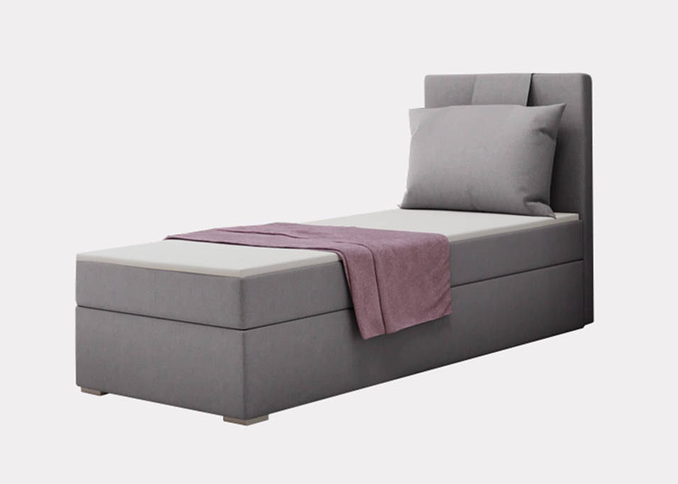 AMANDA kontinentalsäng är ett perfekt erbjudande för en tonårings sovrum. Det kommer att harmonisera perfekt med moderna interiörarrangemang och förvandla ditt barnrum till en oas av avkoppling, komfort och lugn. Enkla kontinentalsängar blir mer och mer populära tack vare deras intressanta utseende. AMANDA-sängen har en hög, mjuk sänggavel som ser ut som en kudde, tack vare vilken du kan luta dig tillbaka på kvällen och läsa din favoritbok utan att oroa dig för ryggsmärtor. Huvudmadrassen är gjord av bonellfjädrar i kombination med T25-skum. Toppmadrassen är gjord av högelastiskt skum med en tjocklek på 4 cm. Sängen är utrustad med en stor behållare för sängkläder och en automatisk mekanism på fjädrar som underlättar öppning.