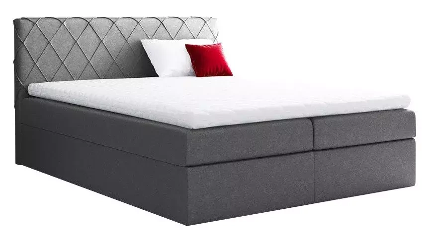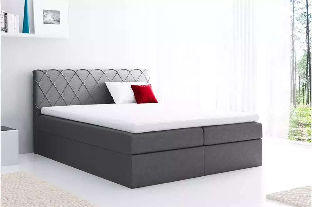 Mörkgrå Paros kontinentalsäng är en modell som består av 3 delar. Sängbotten är en vadderad trälåda. Det ger strukturen stabilitet och styrka. Boxen är också ett extra förvaringsutrymme. Det kan vara en bra behållare för sängkläder.