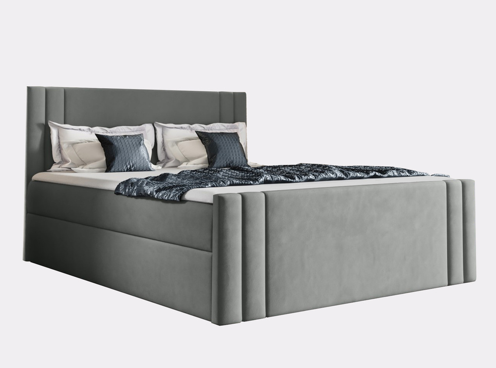 En säng med sänggavel är ett erbjudande för dig som gillar att koppla av i sängen. CARMEN-modellen är utrustad med ett dekorativt sytt nackstöd täckt med mjukt skum. Ta med dig din favoritbok, titta på film eller arbeta på din bärbara dator. Nackstödet fungerar som ett ryggstöd, men skyddar samtidigt väggen. Sängen är utrustad med 2 behållare för sängkläder. Automatiska öppningshjälpmedel hjälper dig att enkelt lyfta behållarna för att förvara sängkläder eller extra filtar. Basmadrass med höjd 20 cm, fylld med bonellfjädrar och T30-skum. Tack vare denna konstruktion kommer madrassen säkert att vinna ditt hjärta med sin bekväma yta, som samtidigt kommer att kunna ge rätt stöd för din kropp. Det sista lagret är en övermadrass av 5 cm högelastiskt skum.