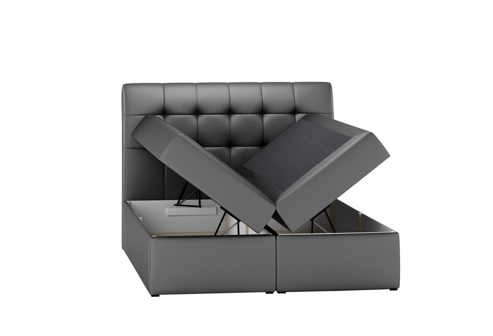 En seng med sengegavl er et tilbud for folk som liker å slappe av i sengen. CARMEN-modellen er utstyrt med en dekorativt sydd hodestøtte dekket med mykt skum. Ta med deg favorittboken din, se filmer eller arbeid på den bærbare datamaskinen. Hodestøtten fungerer som ryggstøtte, men beskytter samtidig veggen. Sengen er utstyrt med 2 beholdere for sengetøy. Automatiserte åpningshjelpemidler vil hjelpe deg med å enkelt løfte beholderne til oppbevaring av sengetøy eller ekstra pledd. Basemadrass med høyde 20 cm, fylt med bonellfjærer og T30 skum. Takket være denne konstruksjonen vil madrassen helt sikkert vinne hjertet ditt med sin komfortable overflate, som samtidig vil kunne gi riktig støtte til kroppen din. Det siste laget er en overmadrass laget av 5 cm høyelastisk skum.