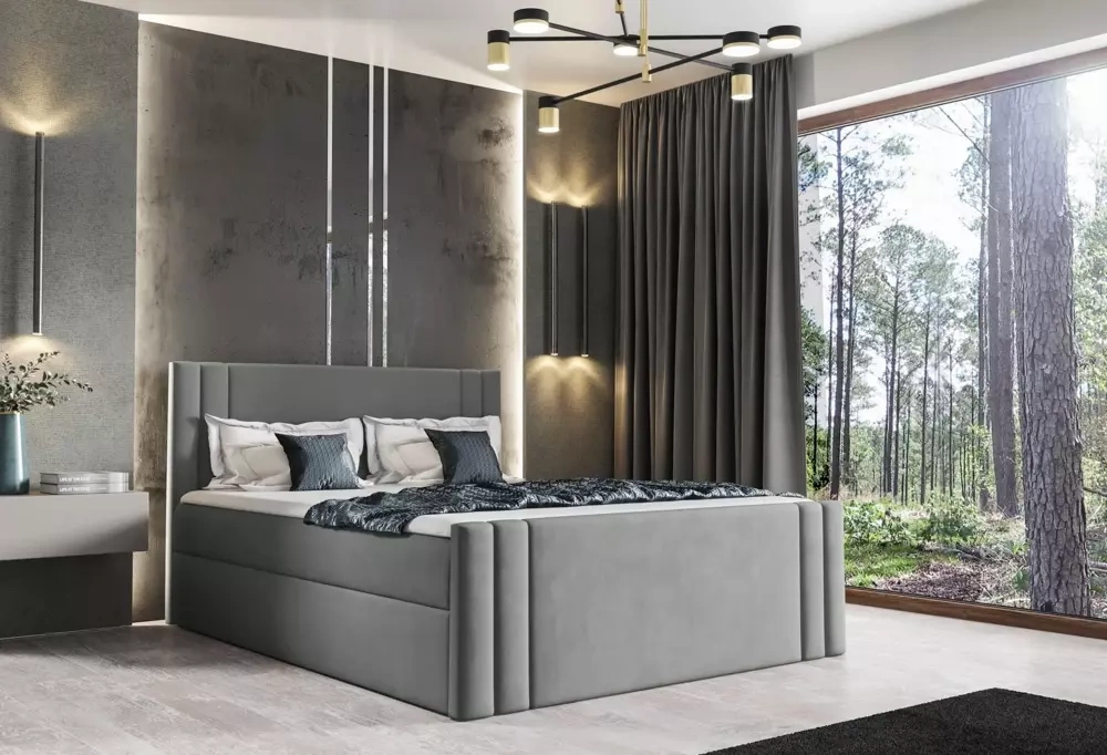 En säng med sänggavel är ett erbjudande för dig som gillar att koppla av i sängen. CARMEN-modellen är utrustad med ett dekorativt sytt nackstöd täckt med mjukt skum. Ta med dig din favoritbok, titta på film eller arbeta på din bärbara dator. Nackstödet fungerar som ett ryggstöd, men skyddar samtidigt väggen. Sängen är utrustad med 2 behållare för sängkläder. Automatiska öppningshjälpmedel hjälper dig att enkelt lyfta behållarna för att förvara sängkläder eller extra filtar. Basmadrass med höjd 20 cm, fylld med bonellfjädrar och T30-skum. Tack vare denna konstruktion kommer madrassen säkert att vinna ditt hjärta med sin bekväma yta, som samtidigt kommer att kunna ge rätt stöd för din kropp. Det sista lagret är en övermadrass av 5 cm högelastiskt skum.