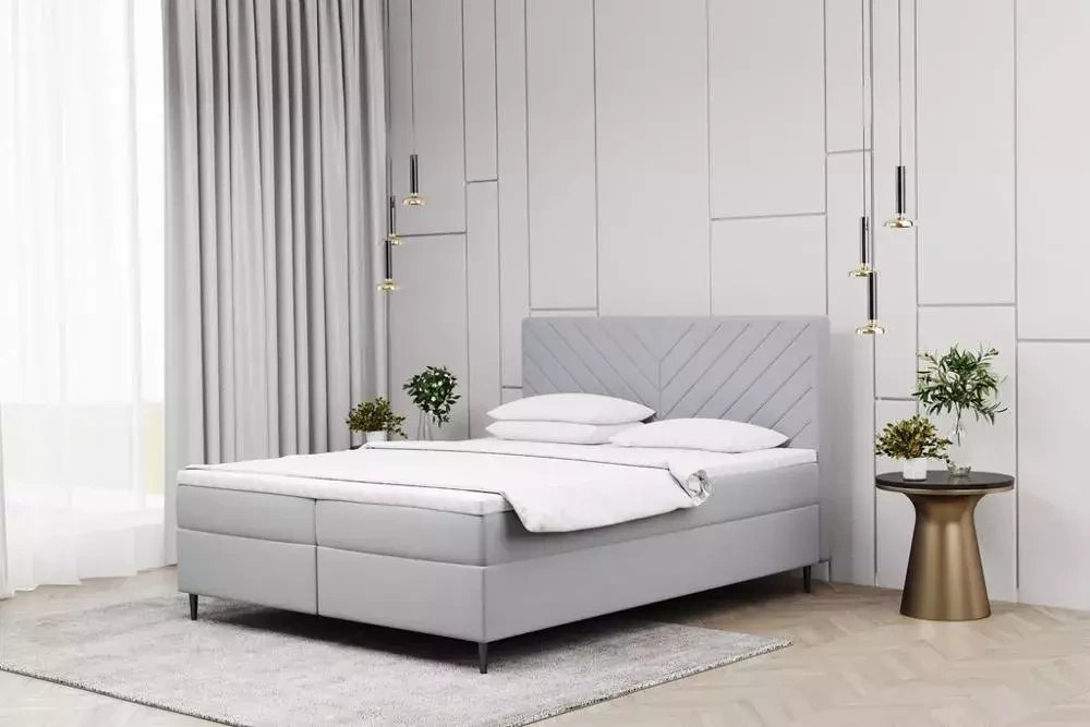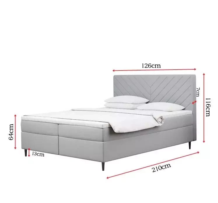 Förväntar du dig mer av dina möbler än bara ett snyggt utseende? Välj då den eleganta kontinentalsängen BALTIC, som mästerligt kombinerar funktionalitet med en vacker look! BALTIC-sängen kommer att locka din uppmärksamhet med en vadderad ram och en intressant sänggavel täckt med geometriska mönster. BALTIC sovrumssäng har en lagerstruktur som är karakteristisk för kontinentalsängar. Möbler har en stabil lådbotten på vilken en bonellmadrass placeras. Tack vare en speciell kombination av bonellfjädrar och T-30-skum kommer detta element att ge dig utmärkt mjukhet samtidigt som det ger tillräckligt stöd för nyckelpunkterna i ryggraden. Det hela avslutas med en behaglig ytmadrass gjord av T-25-skum, som inte bara ger extra komfort, utan också skyddar möblerna från smuts. Höga, 13 cm, metallben ger lätthet och elegans. Dessutom ger denna modell en plats för bekväm förvaring av sängkläder, eftersom den döljer två stora behållare.