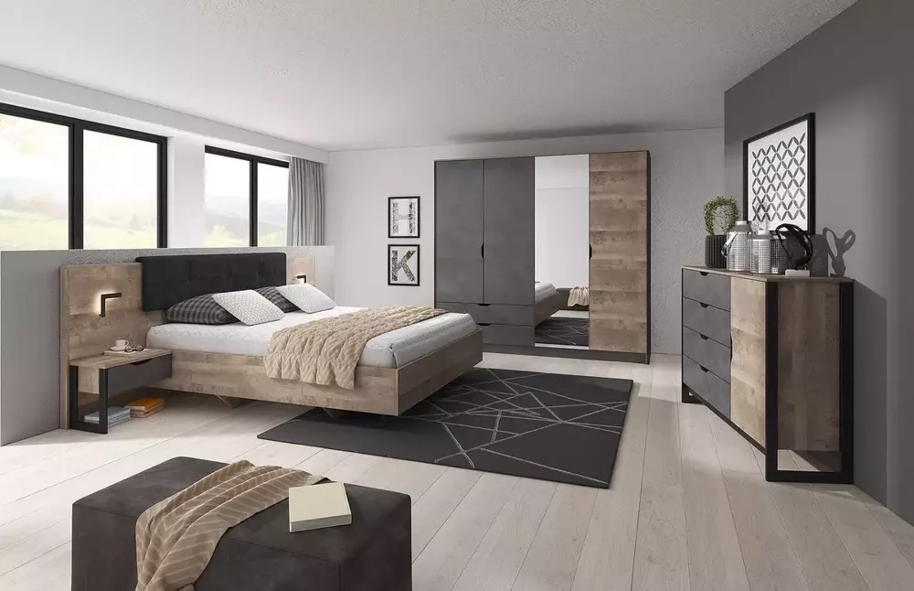 Den unika kombinationen av varma grande ek färger med grafit nyans ger sovrummet en unik, stark karaktär och skapar en oöverträffad atmosfär.