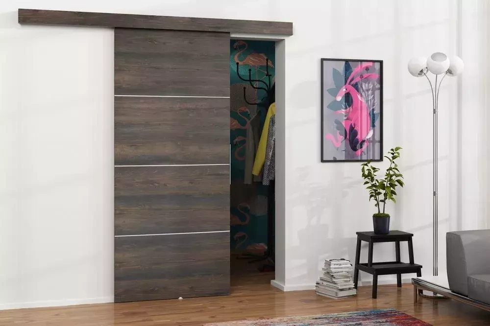 MALIBU skjutdörrar kommer att uppskattas av människor som vill ha unik och modern lägenhet. Dörren är gjord av spånskiva, lämplig för urtag upp till 80 cm breda.