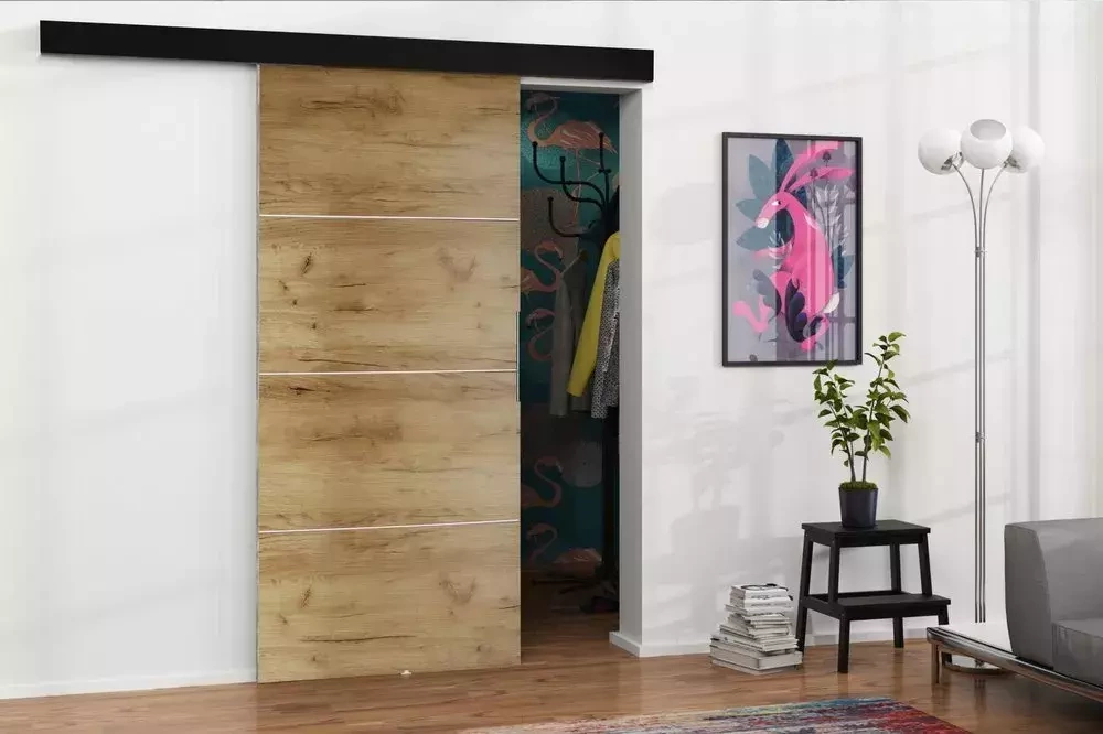 MALIBU skjutdörrar kommer att uppskattas av människor som vill ha unik och modern lägenhet. Dörren är gjord av spånskiva, lämplig för urtag upp till 90 cm breda.