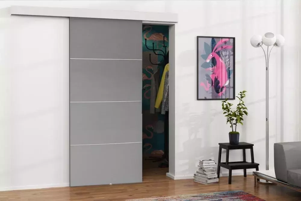 MALIBU skjutdörrar kommer att uppskattas av människor som vill ha unik och modern lägenhet. Dörren är gjord av spånskiva, lämplig för urtag upp till 100 cm breda.