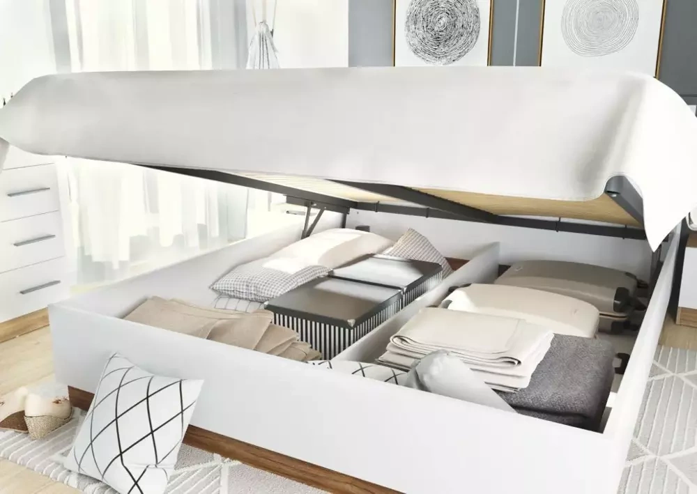 Under sängen finns ett otroligt rymligt förvaringsutrymme.