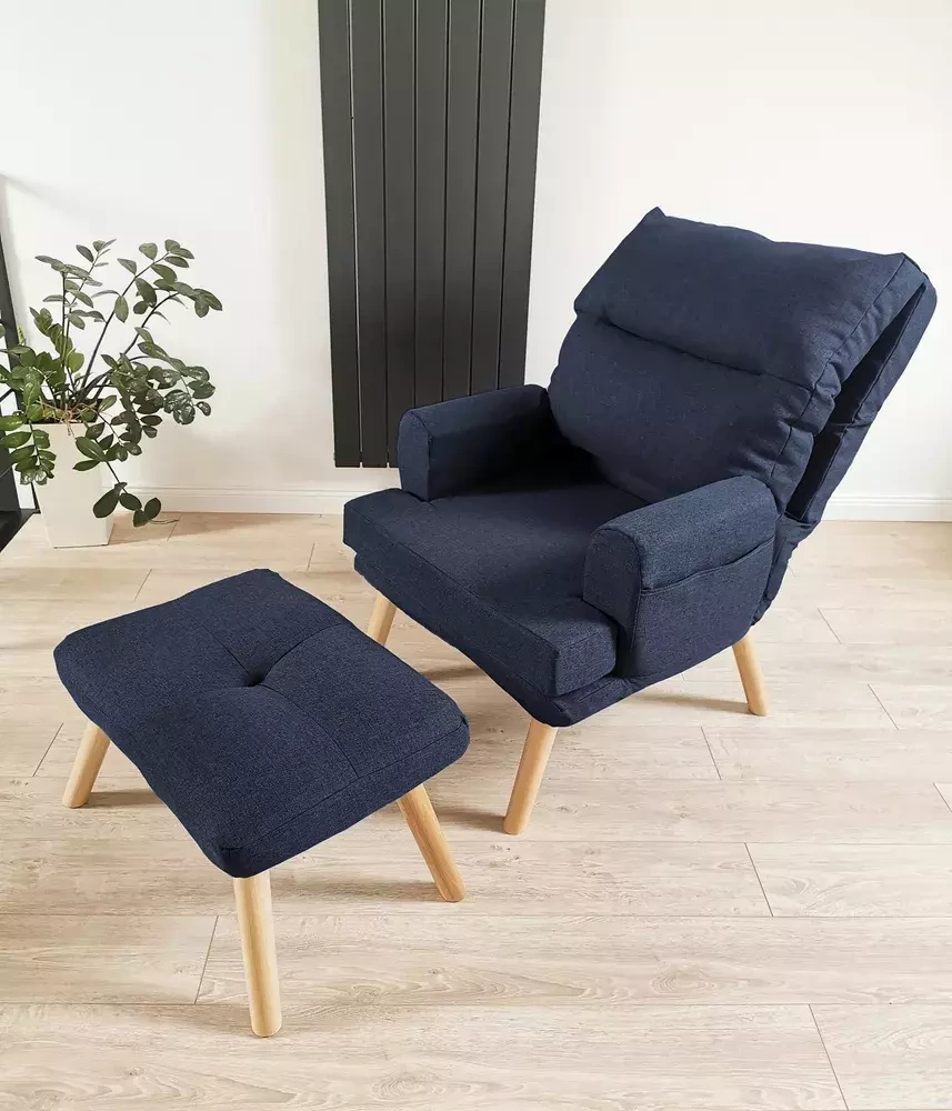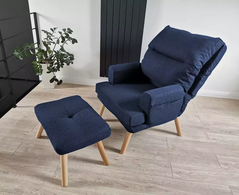 Åsikter om Fåtölj Nemo marinblå med fotstöd