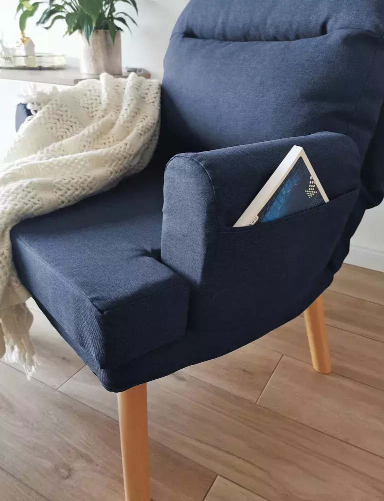 - Två praktiska fickor för tidning, bok eller fjärrkontroll
